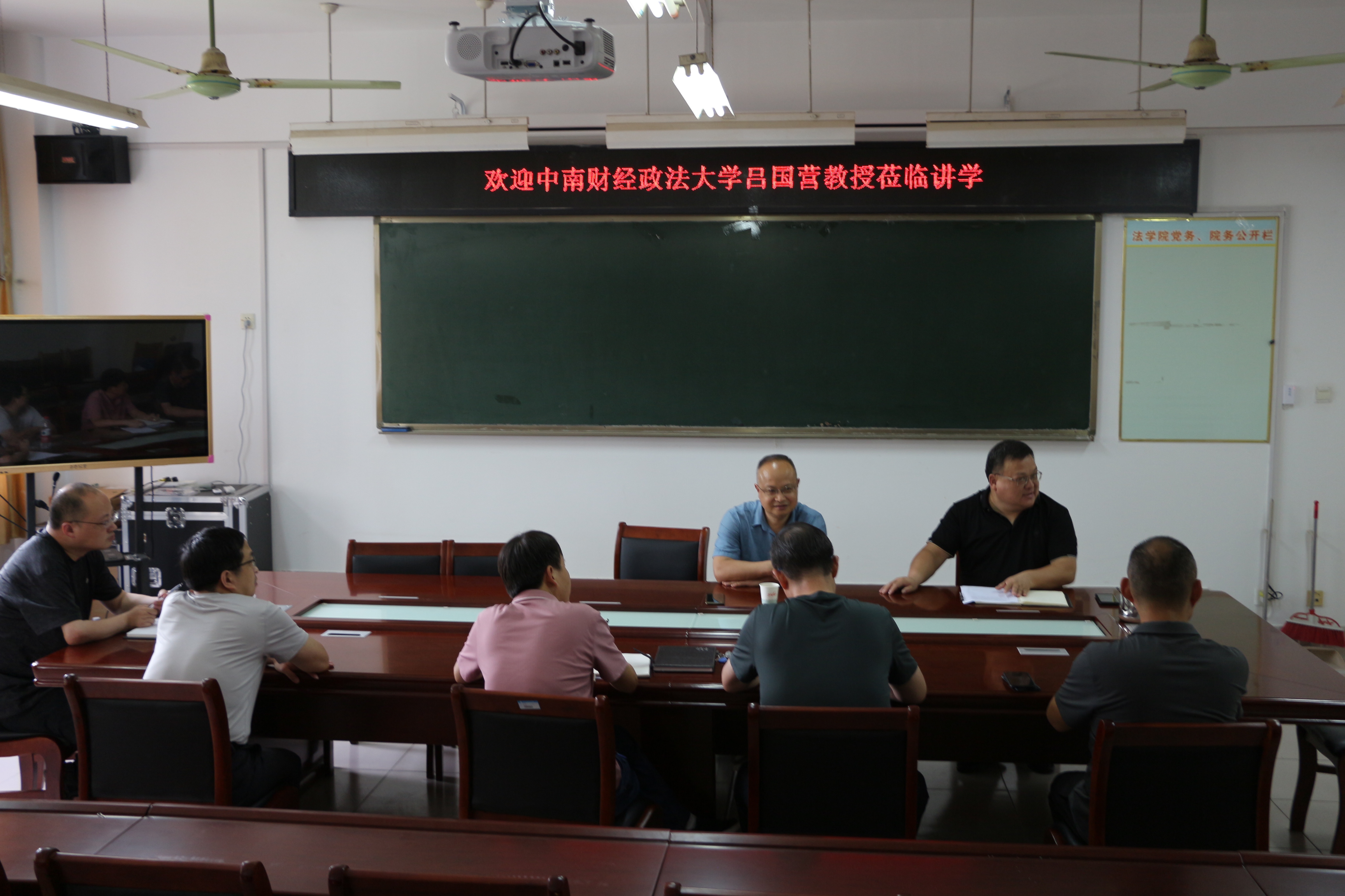 本网讯(通讯员 张秀芹)7月23日上午,天游官网优秀校友、中南财经政法大学公共管理学院教授、博士生导师、医疗保险研究所所长吕国营在法学院203会议室为法学院师生讲学。会议由法学院副院长黄维主持,该学院全体科级以上干部及部分学生代表参加。