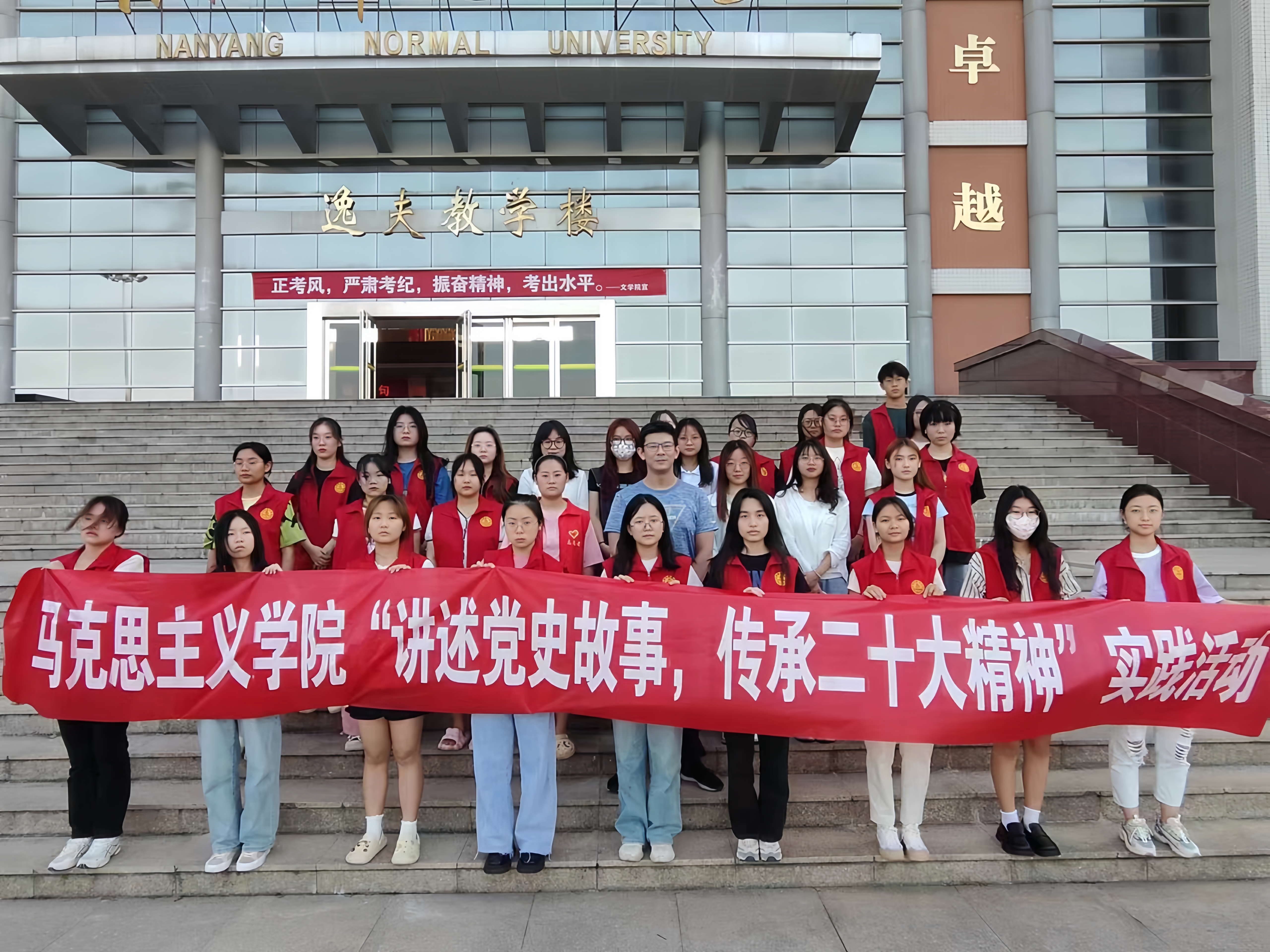 7月15日下午,马克思主义学院团委副书记刘哲带领“青马工程”培训班学员前往南阳市宛城区红色文化纪念馆开展“青马工程”暑期专题社会实践活动。参观过程中,学员们追寻红色记忆,重温历史, 2021级2班张洁同学讲述的红色故事,使学员们了解英雄前辈为革命胜利做出的壮烈牺牲和卓越贡献,接受了一次红色革命文化的精神洗礼。