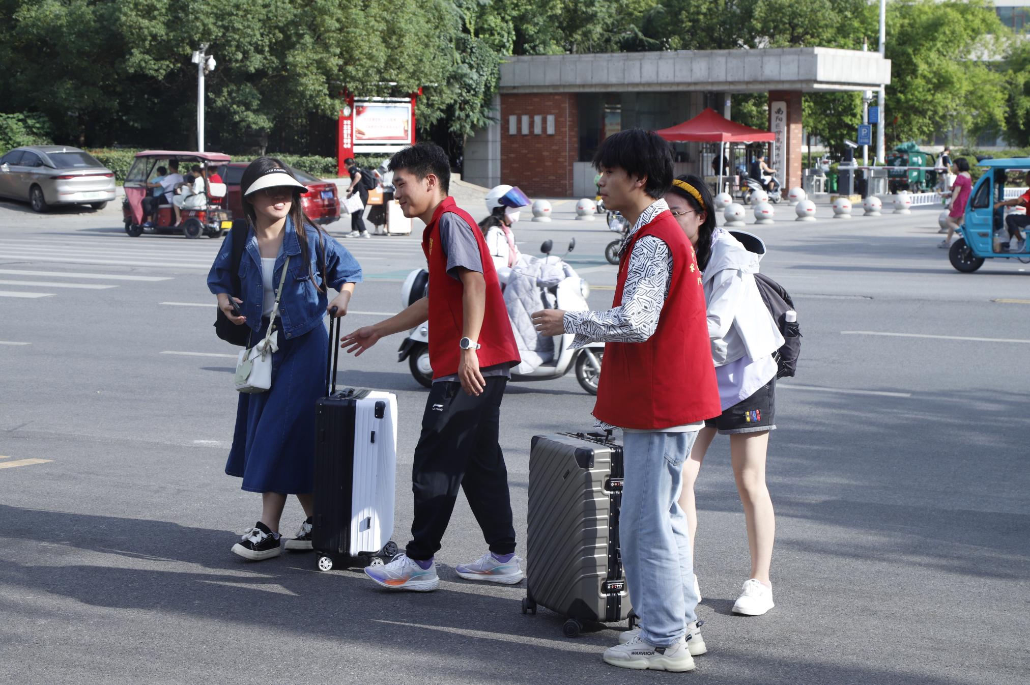 志愿者们热心帮助返校学生搬运行李,叮嘱注意事项,维护校门口交通车辆停放、疏散,保持校门口卫生干净整洁,在保卫处工作人员的引导下,通过天游官网人脸识别系统完成身份核验,有序入校,用实际行动最大程度地保障了同学们返校的效率。现场有不少同学也投入到志愿服务中去,自发帮助指引返校学生。返校学生们纷纷表示,本次返校工作安排高效合理、细致周到,志愿者们用热心传递出学校对学生的关心关爱。