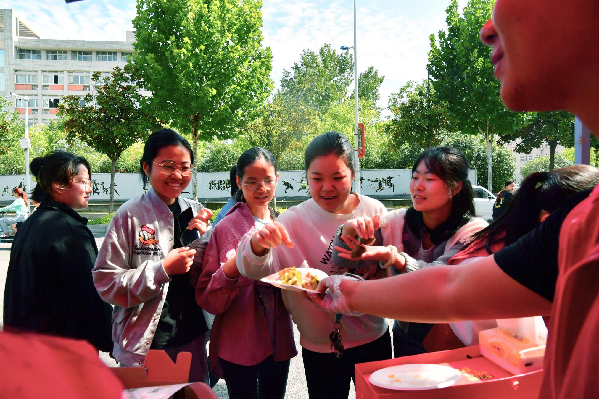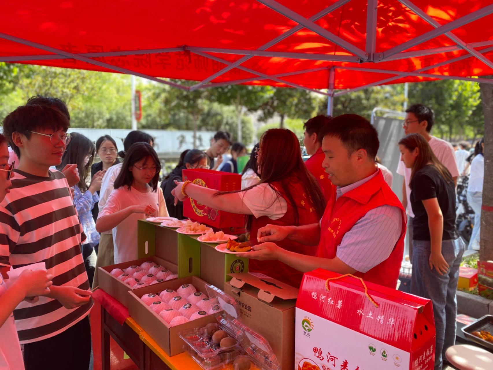 活动现场,展台上不仅有琳琅满目的优质农产品,展台后还有知农爱农的生科与农工学院师生志愿者们,积极宣传中国农民丰收节,弘扬中华优秀传统农耕文化,展示学院科技助农兴农的合作成果、师生学农爱农助农的担当与情怀,邀请学校师生品尝丰收的喜悦,脆甜多汁的秋月梨、细腻香甜的哈密冰糖薯、软糯清甜的红心猕猴桃等美食收获了大家的一致好评。
