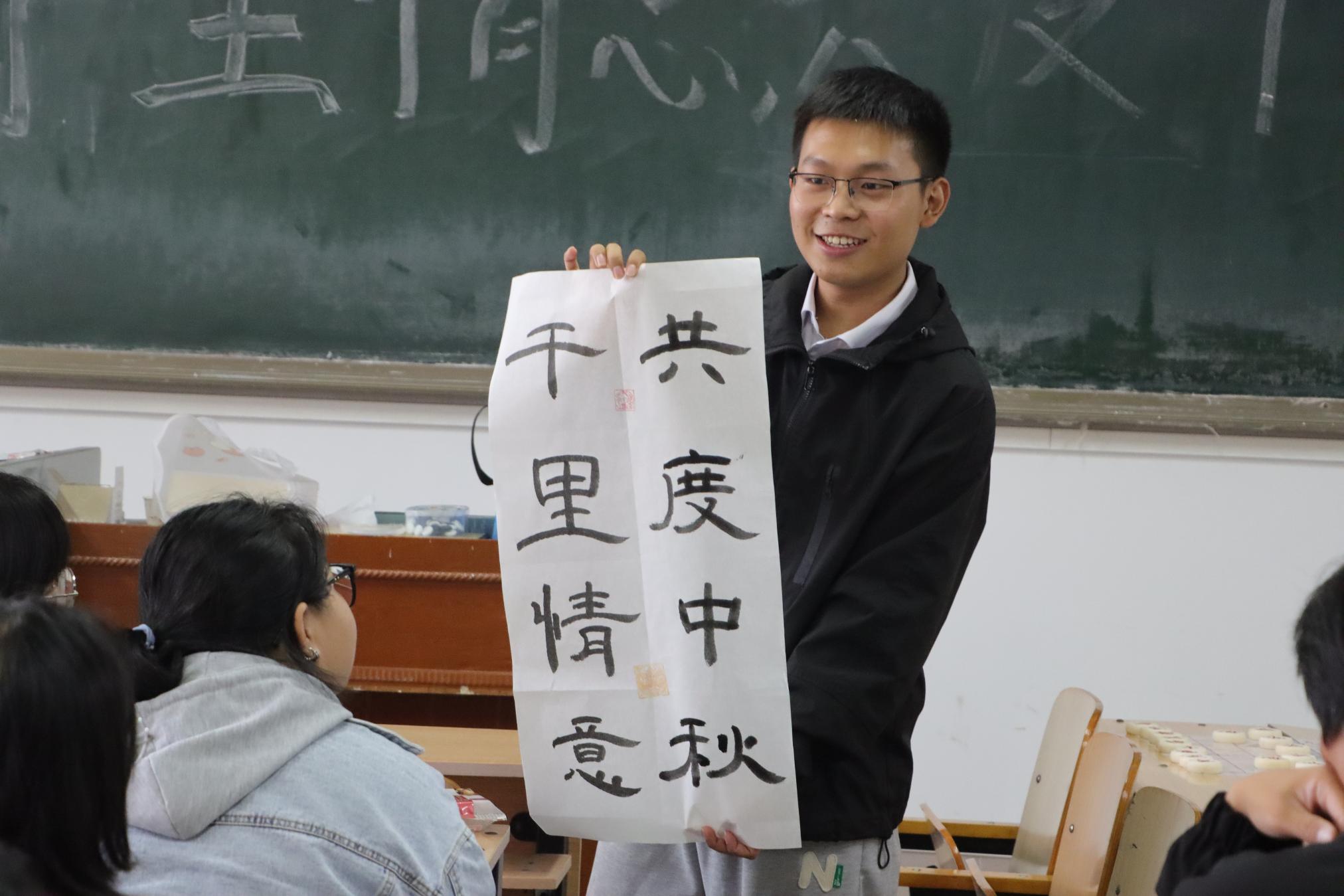 9月29日,卧龙国学社团在逸夫楼N406教室开展“千里情意,共度中秋”的活动。大家分享了中秋节的来历习俗,以及节日与南阳的历史渊源,并观看了与中秋节相关的视频,进行了猜灯谜、书写对联、朗诵诗词等游戏。