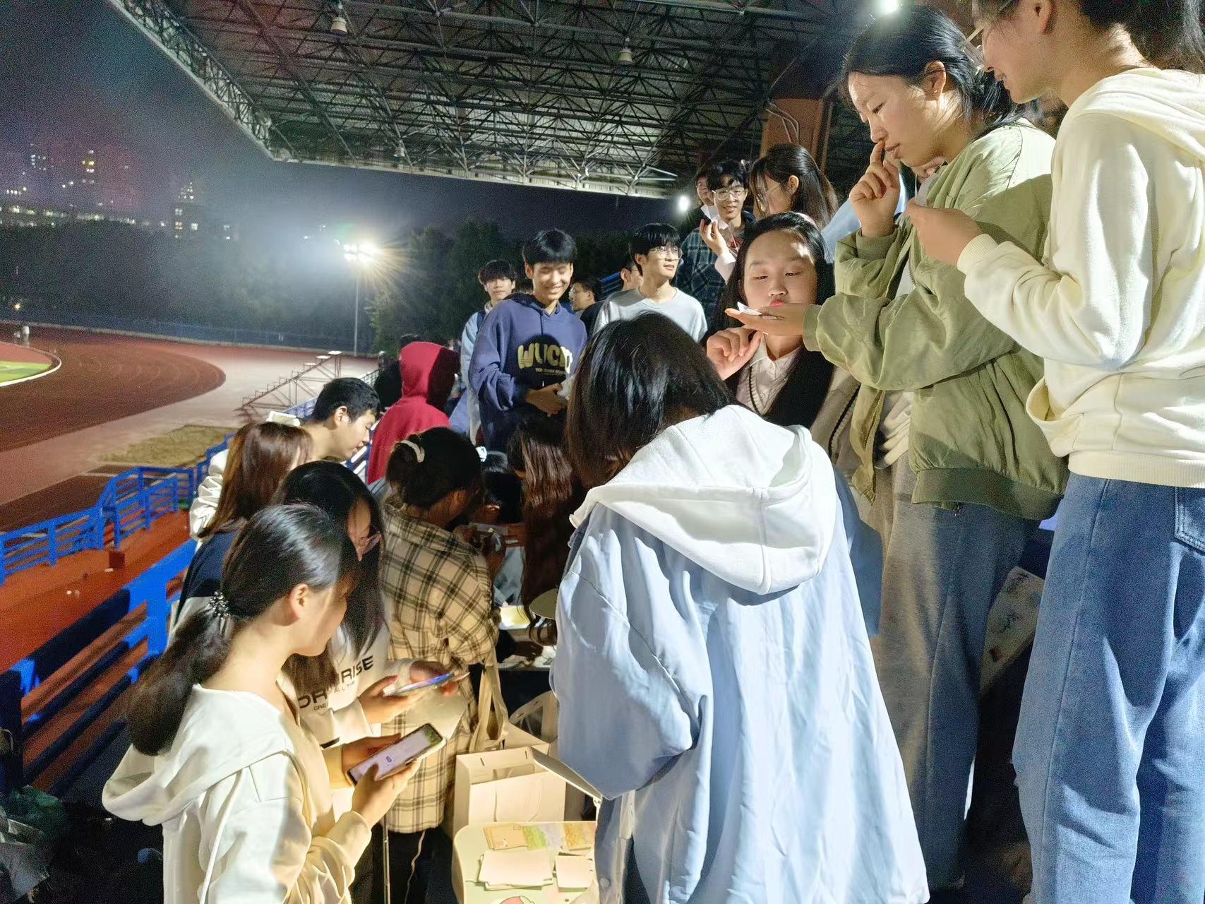 9月27日,春蕾志愿者学生社团在中区田径场开展中秋猜灯谜活动。社团负责人积极组织同学们参加中秋猜灯谜活动,并在贺卡上写下自己的中秋祝福,送给留校的同学与校园工作者。