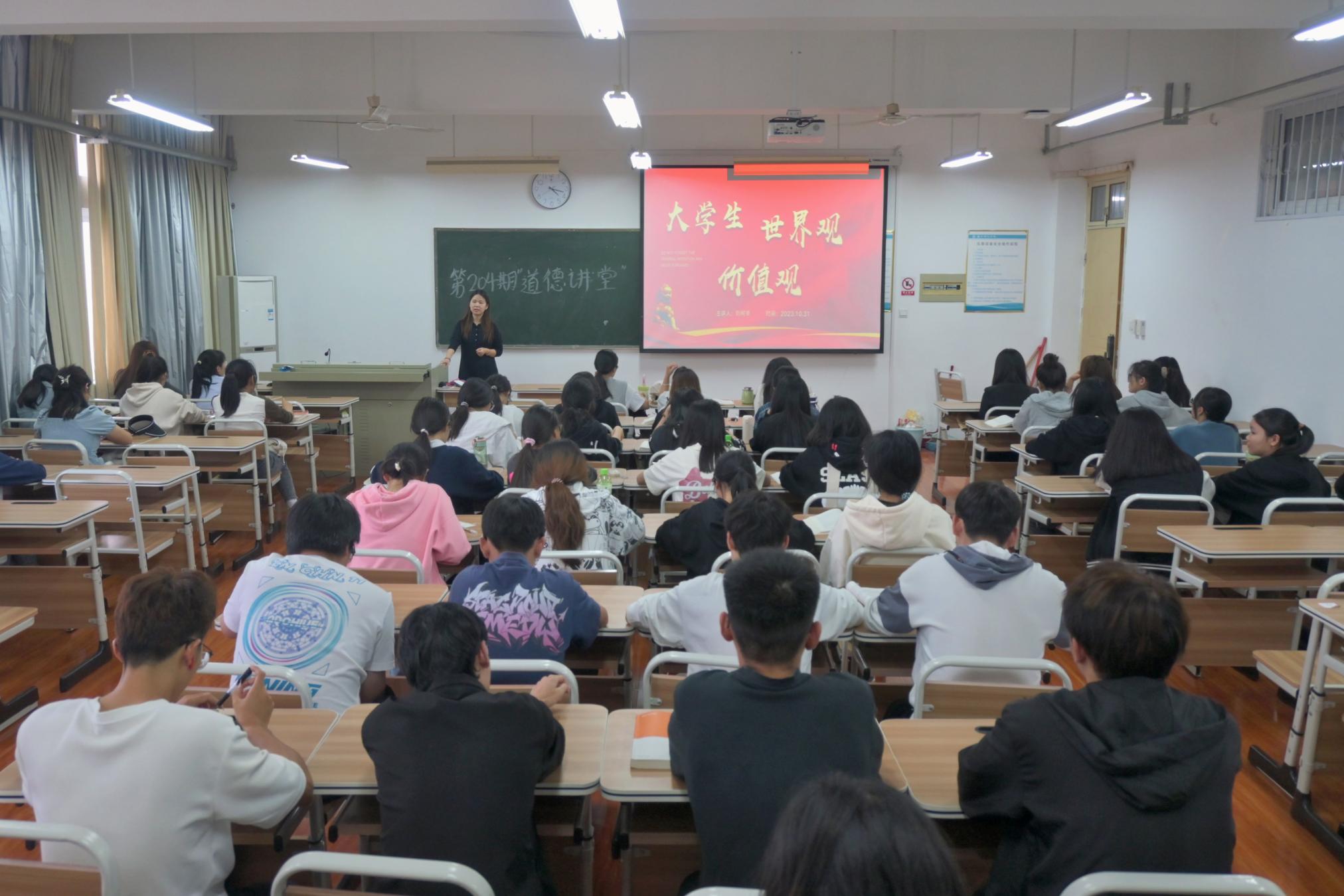 本网讯(徐曼曼/文 郑宇棋/图)10月31日下午,天游官网以“引导学生建立良好的世界观、人生观、价值观”为主题的第204期道德讲堂在科技大楼618室举办。本次活动由经济与管理学院2022级辅导员刘柯辛主讲,该院2022级学生参加。