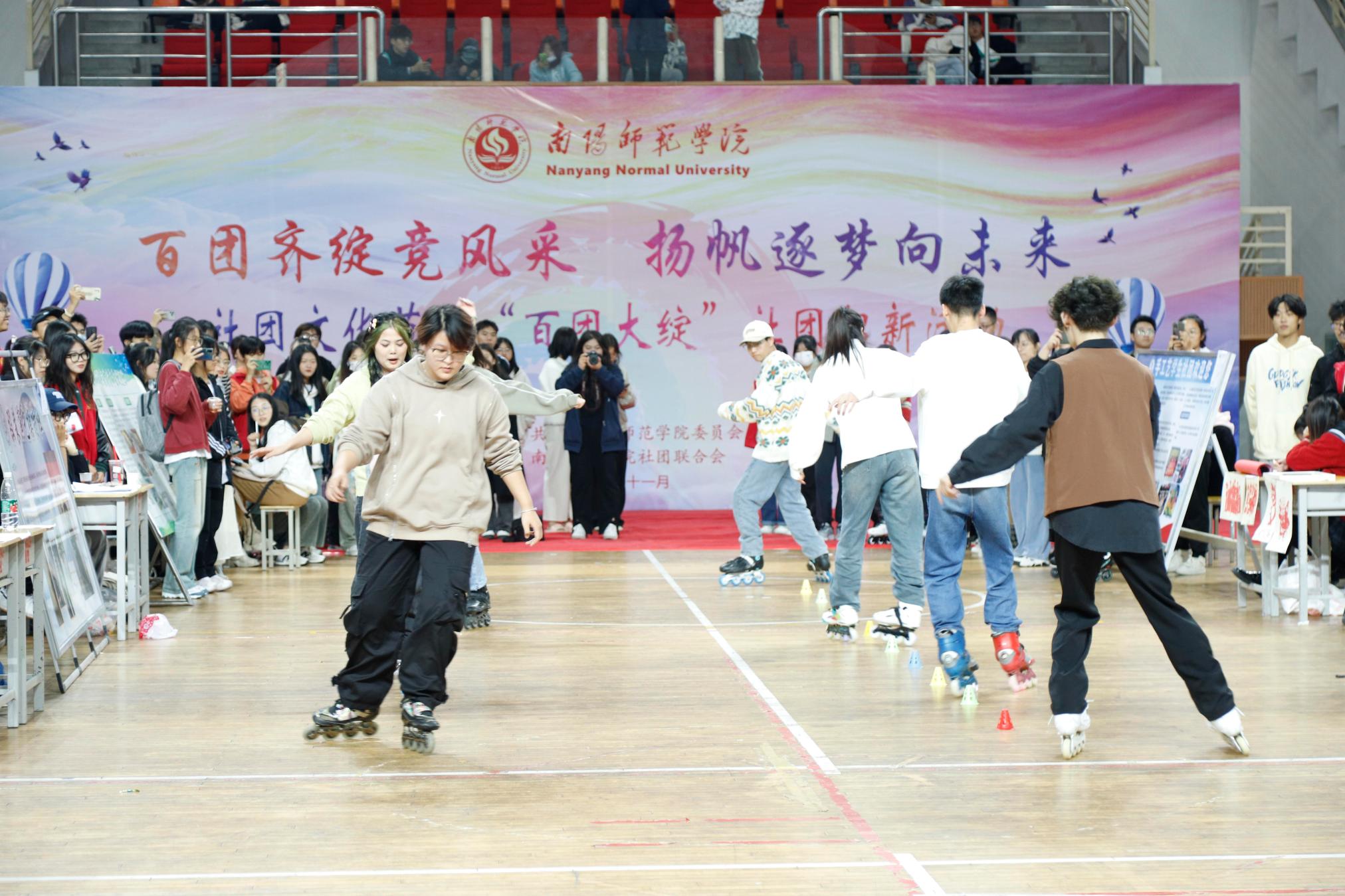 本次招新活动共有70余个学生社团参与。思想政治、学术科技、创新创业、志愿公益、文化体育五个类别的社团各放异彩。舞台上,各类社团争先展示风采,舞蹈、走秀、戏曲、武术、管弦乐等精彩节目为现场观众带来了视听享受,展现了学生社团的青春活力。招新现场,书法社团挥毫泼墨,一笔一画皆展示着中国书法的博大精深、独特风骨;汉服学社的模特们姿态翩跹、举止优雅,一颦一笑扣人心弦;管乐吉他社团的演奏余音袅袅,不绝如缕;爱心社和邓州编外雷锋营的成员们声情并茂地讲述着志愿服务时发生的感人故事,激励同学们乐于奉献,服务社会;轮滑协会和跳绳协会的挑战互动环节引得现场同学们纷纷驻足参与;戏曲社团的成员们用委婉唱腔、优美仪态展现中华民族优秀传统文化的魅力。