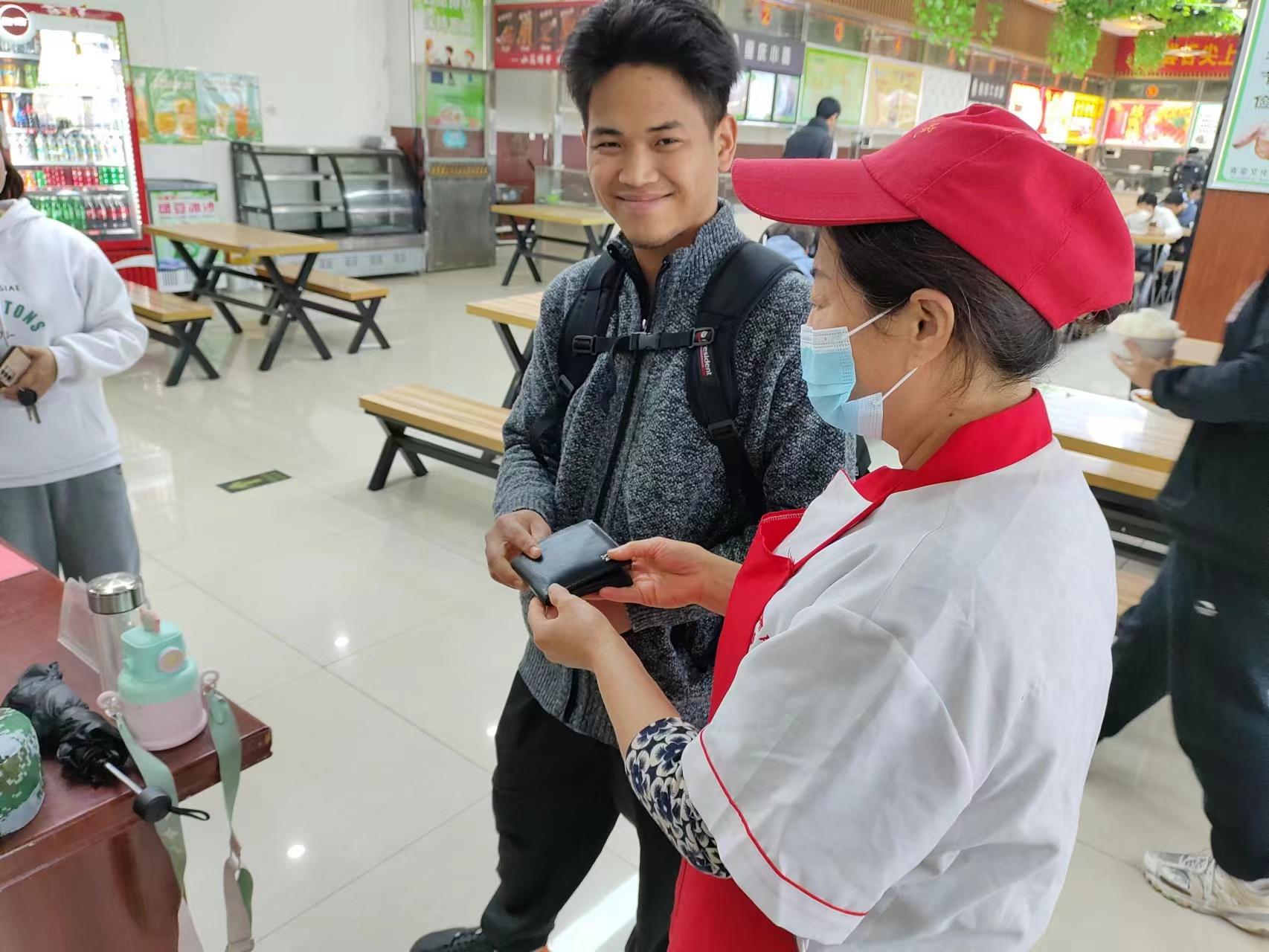 本网讯(通讯员 丁世豪 文/图)11月6日上午,天游官网西区二楼民族餐厅保洁阿姨罗荣提工作时,发现凳子上有一个黑色钱包,罗荣提当即将钱包上交给餐厅经理。经过现场查看,钱包里有外籍身份证、外币、银行卡等物品,餐厅经理将该情况报告给膳食科,膳食科立即将学生证卡信息发送到学生处,在共同努力下,联系上了失主孟加拉国籍留学生米尼·贾吉亚。