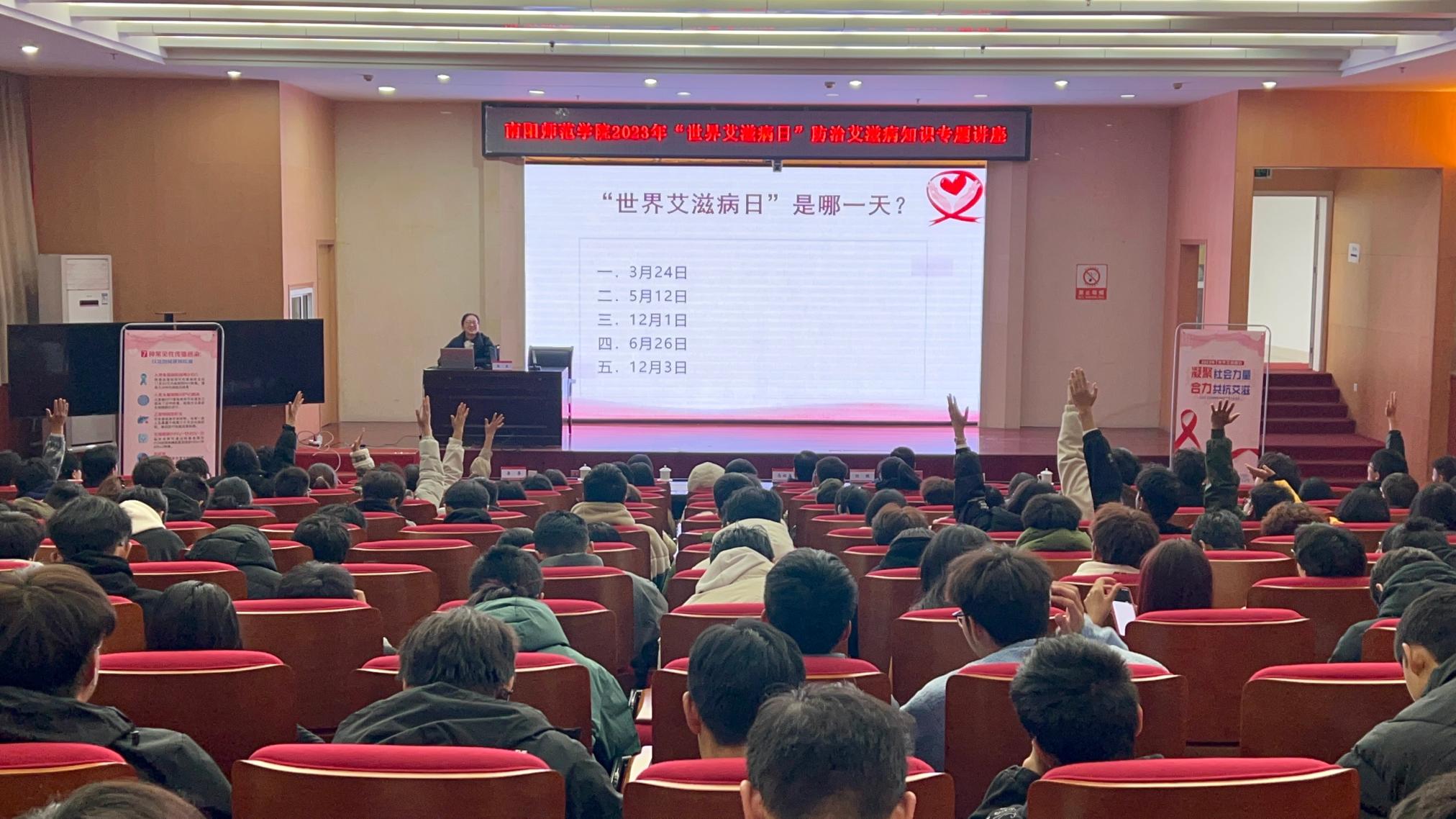 本网讯(通讯员 王莞喆 图/文)2023年12月1日是第36个“世界艾滋病日”。学校高度重视艾滋病的宣传和教育工作。11月28日下午,校医院联合南阳市、卧龙区疾病预防控制中心在图书馆一楼报告厅举办以“凝聚社会力量,合力共抗艾滋”为主题的防治艾滋病知识专题讲座。