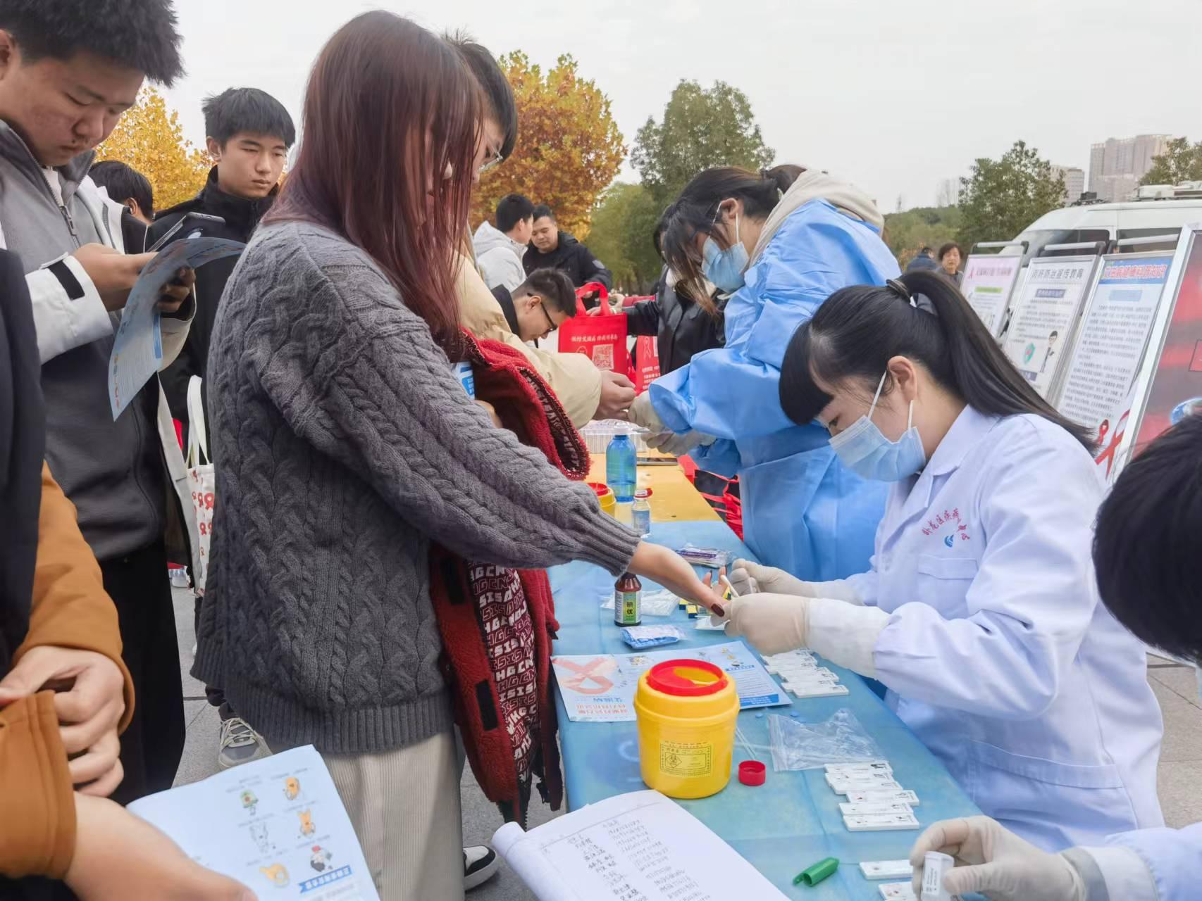 活动现场,疾病预防控制中心工作人员免费为学生们进行快速艾滋病抗体检测;校医院医务人员向学生们发放艾滋病宣传资料,并告知学生天游官网在校医院本部和中区三公寓门诊设置自助式艾滋病自检试剂盒发放机,可进行艾滋病自我检测和判读。