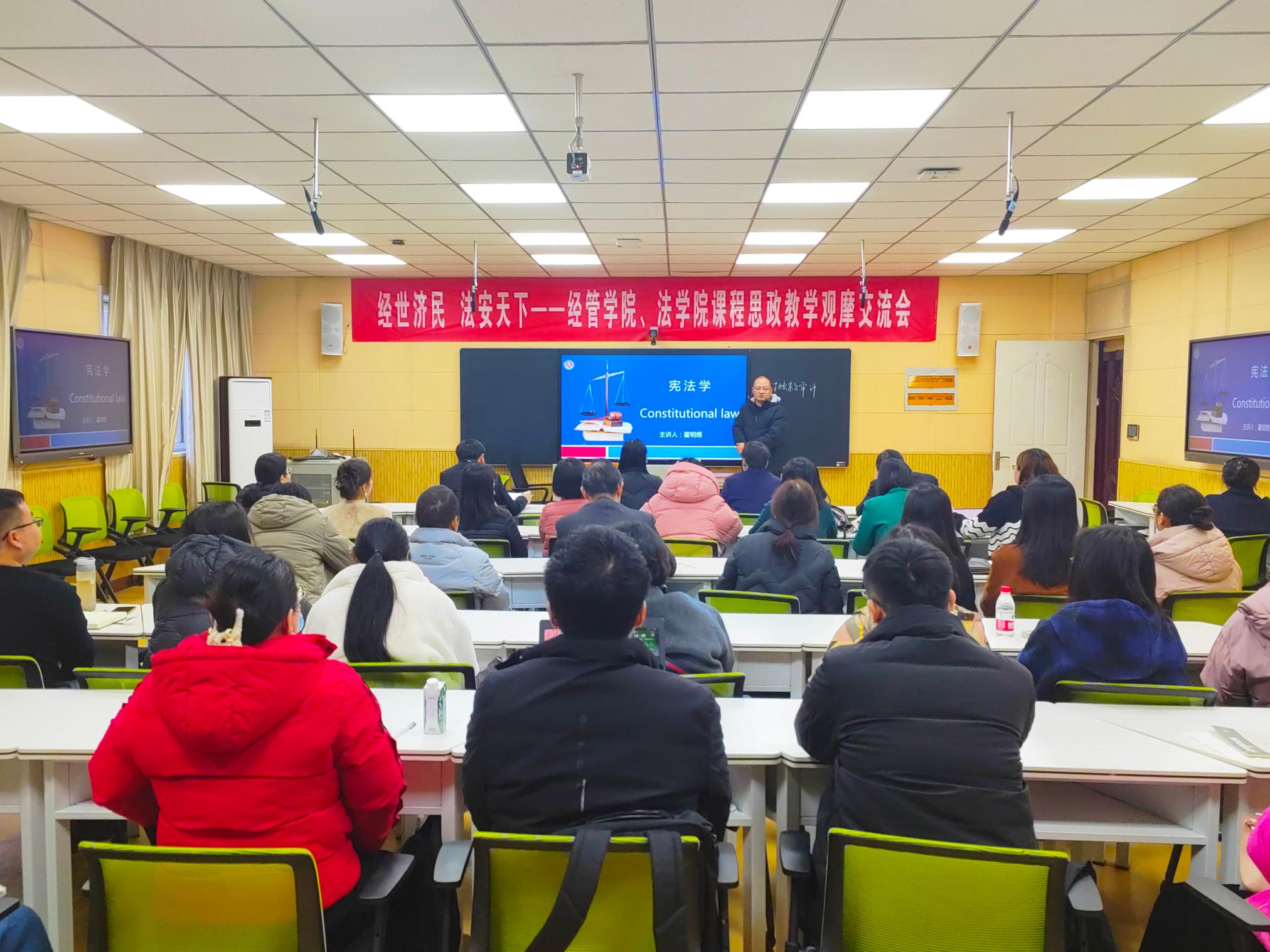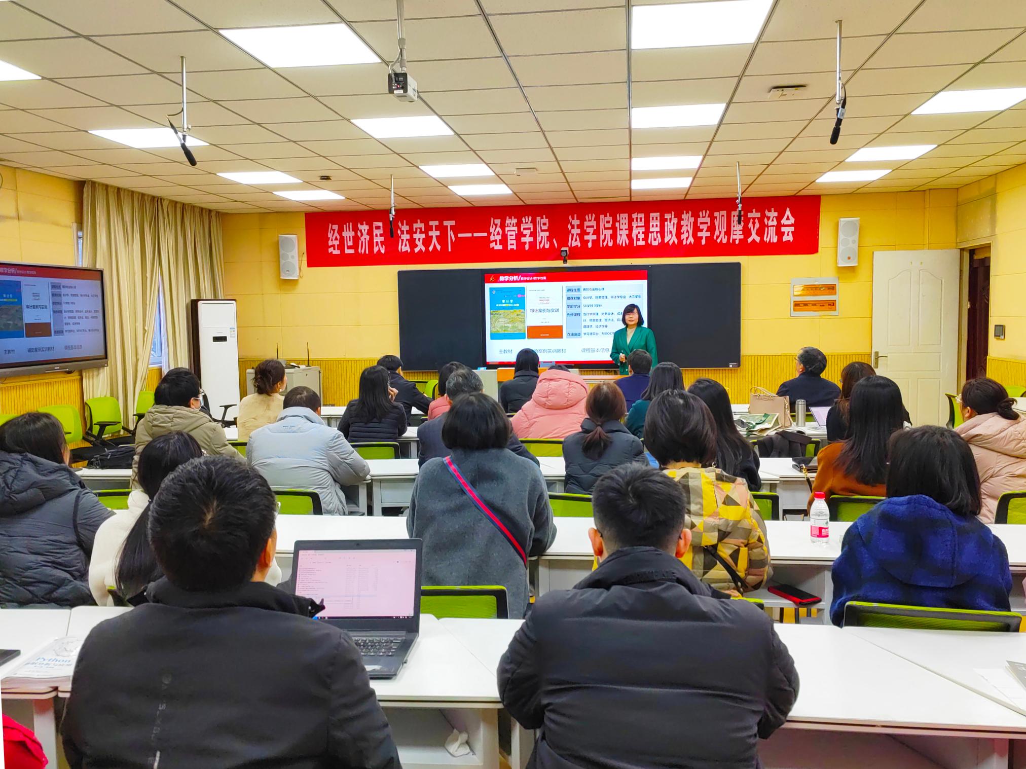 经济与管理学院王媚老师在《审计学》的观摩课中,从上层教学理念,到中层建设思路,再到底层实现路径进行了思政教学的系统化构建与创新。法学院翟明煜老师的《宪法学》深入挖掘宪法中的思政元素,将马克思主义基本原理、中国近现代史、社会主义核心价值观等思政内容有机融入到宪法学教学过程中,达到了“润物细无声”的课程思政教育效果。经济与管理学院张姣姣老师的《微观经济学》课程思政建设以“坚持去粗取精、去伪存真,坚持以我为主、为我所用”为指导思想,通过“一个思政作业贯穿一门课、三个环节打磨一节课”两条路径实现课程思政教学目标。法学院娄玮琪老师在《法律文书学》的观摩课中,以具体文书案例讲解法治建设要积极回应人民群众的新要求新期待,研究和解决法治领域人民群众反映强烈的突出问题,引发学生对职业能力、职业道德与职业目标的思考。马克思主义学院副院长牛田盛对四位老师的课堂教学展示进行了点评。教务处处长刘金江教授对相关学院重视课程思政建设给予了肯定和鼓励,表示教务处会一如既往地服务和支持教师进一步加强课程建设。(编审 刘潇潇)