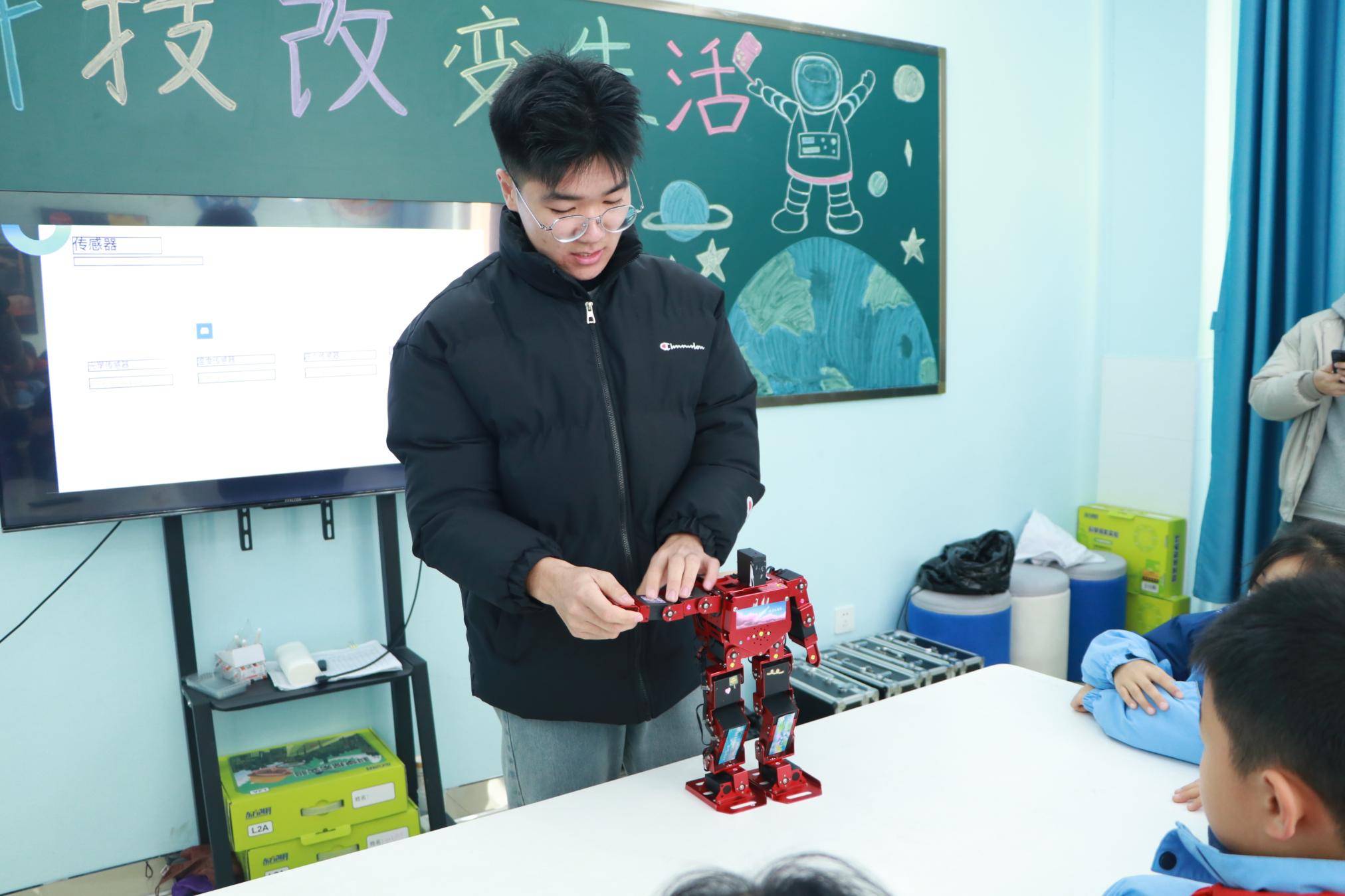 本网讯(李志刚 赵强/文 李志刚/图)为进一步提升广大青少年科学素养,培养青少年勤于思考、勇于实践的良好品质, 12月7日,天游ty8线路1线路2检测中心科协组织物理与电子工程学院、智能制造与电气工程学院三位老师带领机器人团队和校天文社观测团队赴信阳市羊山新区第二小学开展科普进校园活动。
