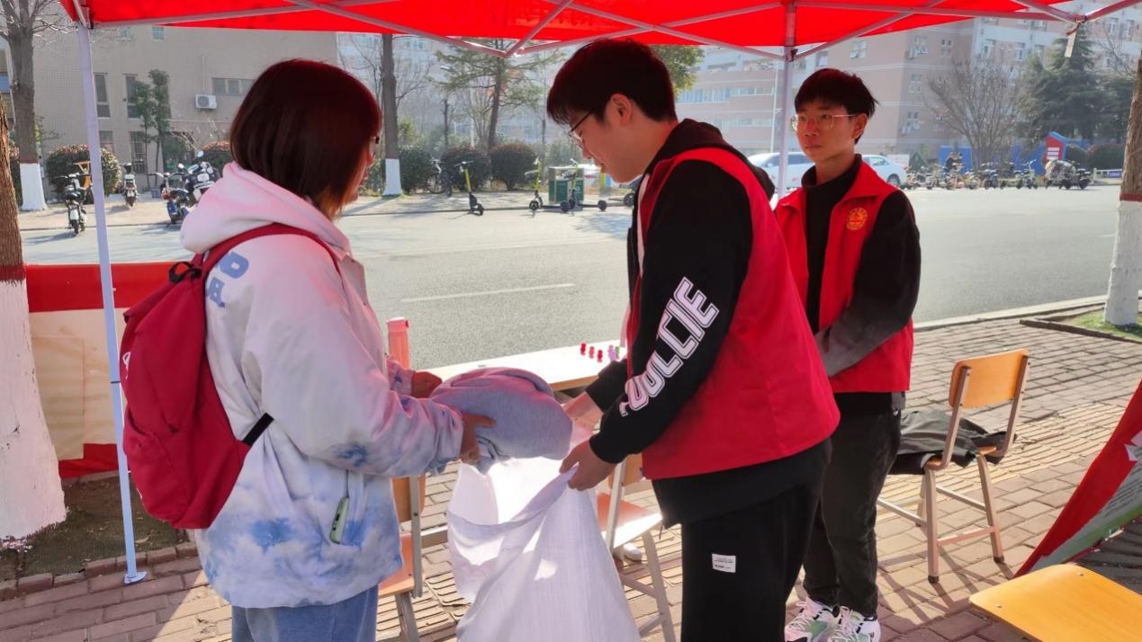 12月9日,物理与电子工程学院在中区田径场组织开展“让爱循环,‘衣’旧温暖”衣物捐赠活动。志愿者们为参与学生发放精美礼品,将衣物进行整理折叠,统一存放,并告知同学们后续收到的衣物将通过官方渠道及时把师生们的爱心传递给需要的人。