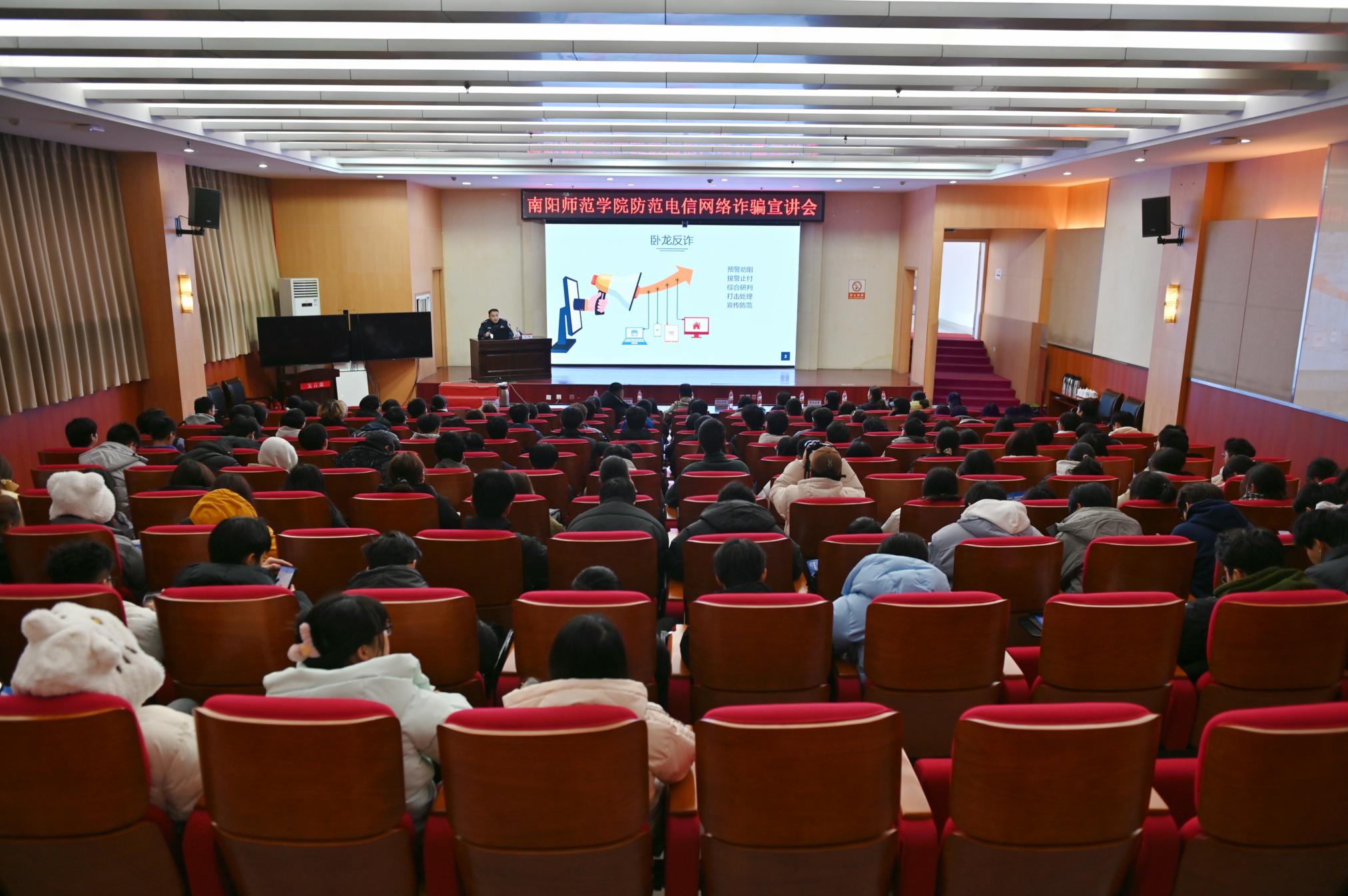 本网讯(王珂/文 李雯 吕莹莹/图)为预防和减少校园电信网络诈骗案件发生,增强大学生识别和防范电信网络诈骗的意识和能力,12月21日下午,保卫处、学生处联合邀请南阳市公安局反诈中心主任付聪及卧龙分局反诈中心主任柏建勋、中队长马耀等在天游官网西区图书馆一楼报告厅作防范电信网络诈骗知识宣讲。部分辅导员及学生代表参加。保卫处处长宋荣岚主持会议。
