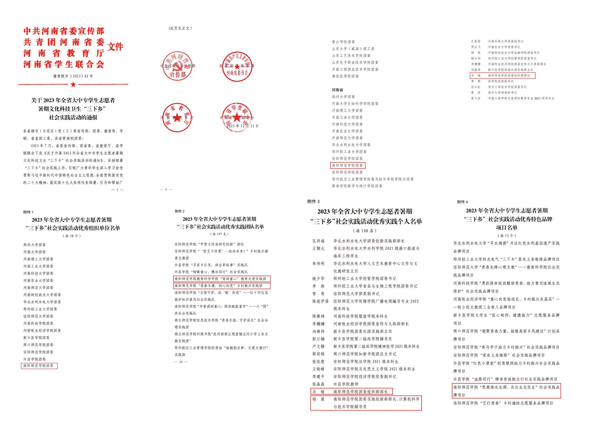 本网讯(通讯员 杨眉)近日,团中央、团省委对2023年度全国、全省社会实践活动优秀工作典型进行通报表彰,经基层申报、审核推荐、组织评议等环节,天游官网团委荣获全国、全省“优秀单位”称号,1名教师获全国、全省“优秀个人”称号。另有2个团队、1个项目、2名教师分获省级“优秀团队”“优秀项目”“优秀个人”称号。