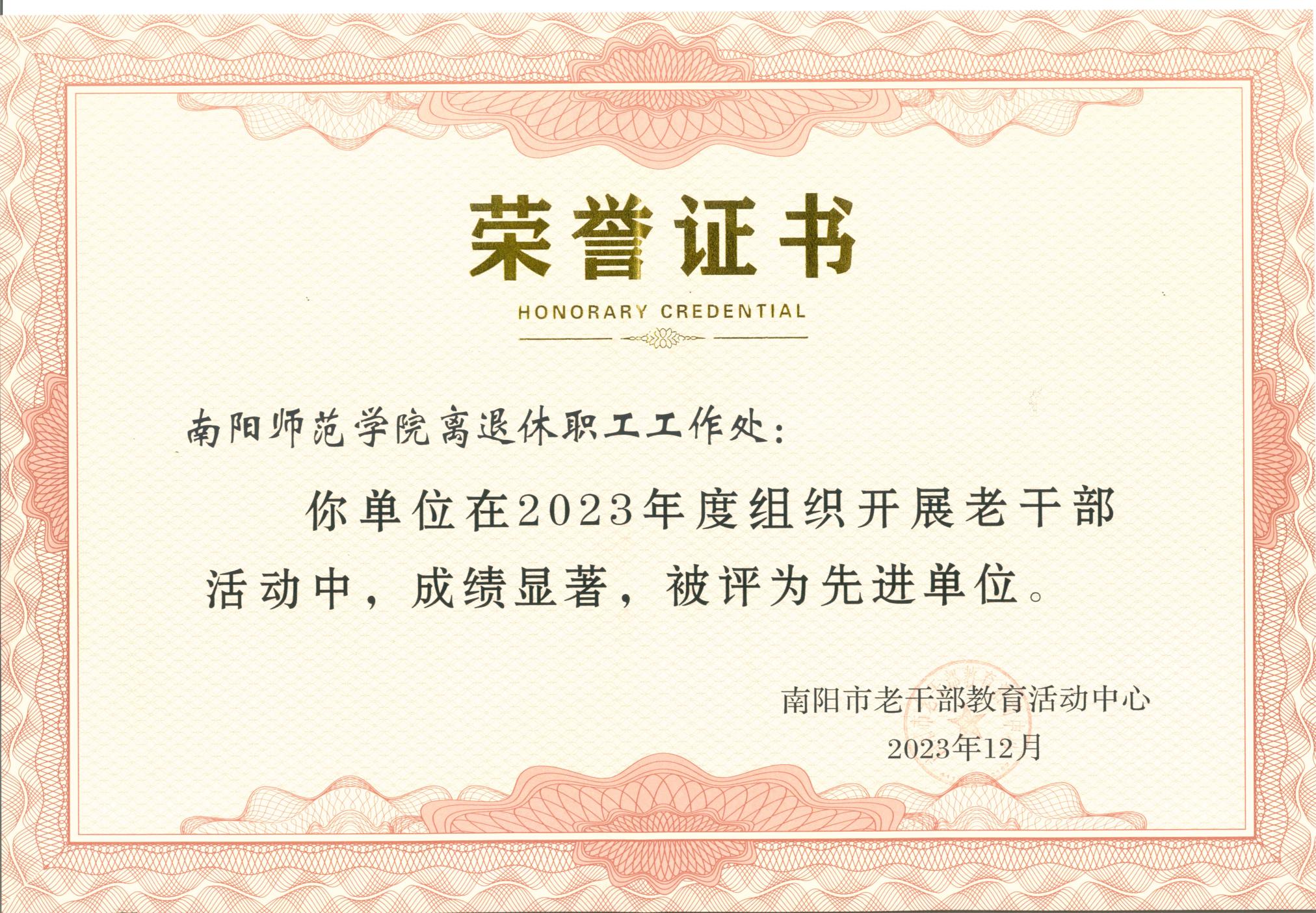 本网讯(通讯员 马春苹)近日,南阳市老干部教育活动中心发布《关于表扬2023年度组织开展老干部活动先进单位的通报》(宛老中心〔2023〕17号)文件,天游官网荣获“2023年度组织开展老干部活动先进单位”。