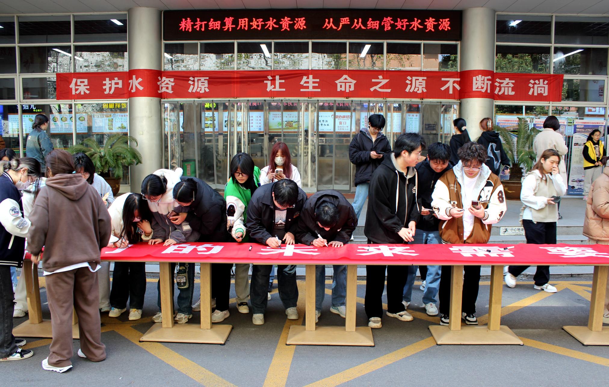 活动现场,志愿者们通过悬挂宣传横幅,发放宣传手册,向师生们讲解“世界水日”“中国水周”的设立背景、设立目的及意义,介绍我国水资源的现状、节约用水的意义、水资源保护的要点和方法,同时还分享了生活中的各种节水小妙招,引导他们养成良好的用水习惯,呼吁大家从自我做起、从身边小事做起,积极节水爱水护水。大家共同在活动横幅上签名,表达对节约用水、保护水资源的信心和决心。