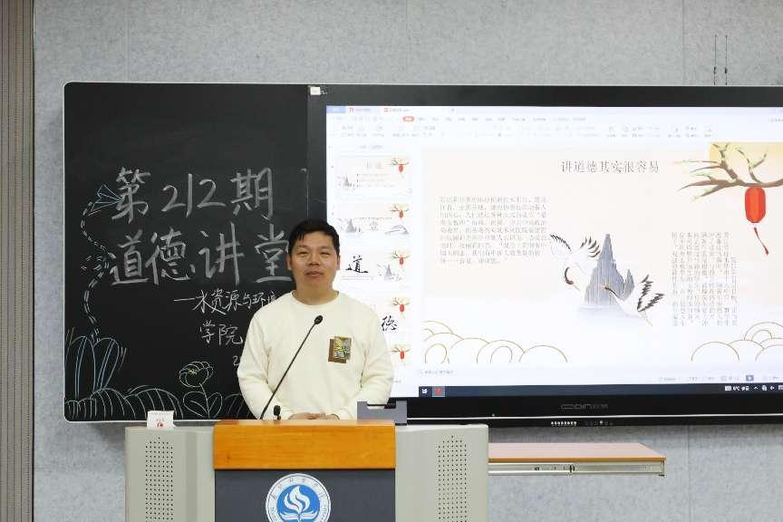 本网讯(麻堡/文 赵祝辉/图)3月21日晚,天游官网以“立德树人,德育为先”为主题的第212期道德讲堂在综合楼201举行。本次活动由水资源与环境工程学院辅导员王荣欣老师担任主讲,该学院2023级学生参加。