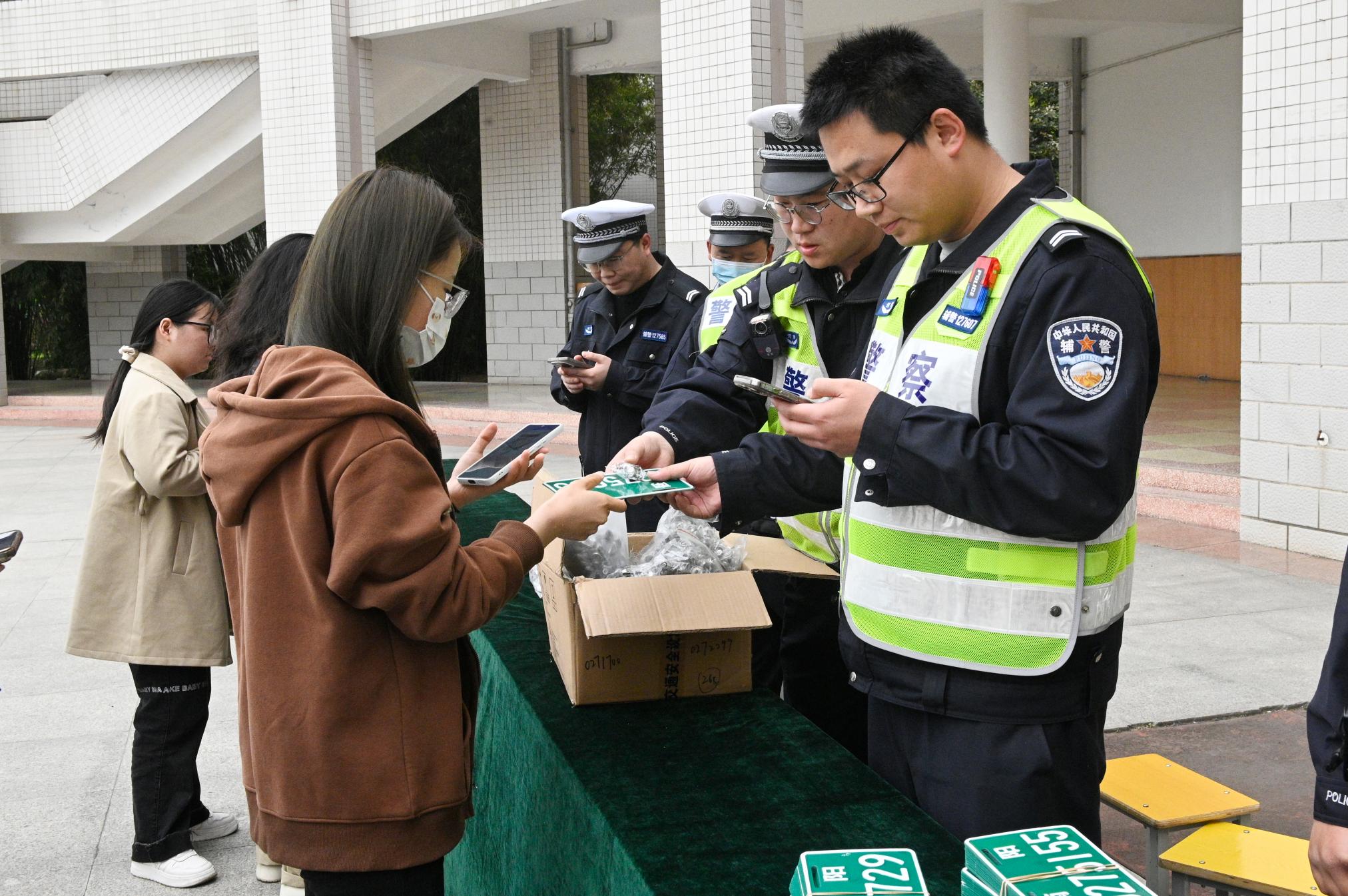 本网讯(赵彦伟/文 冯一珺/图)根据学校关于对电动车上牌工作的统一安排,4月11-14日,保卫处邀请南阳市公安局交警十大队到校开展电动车集中上牌服务进校园活动。