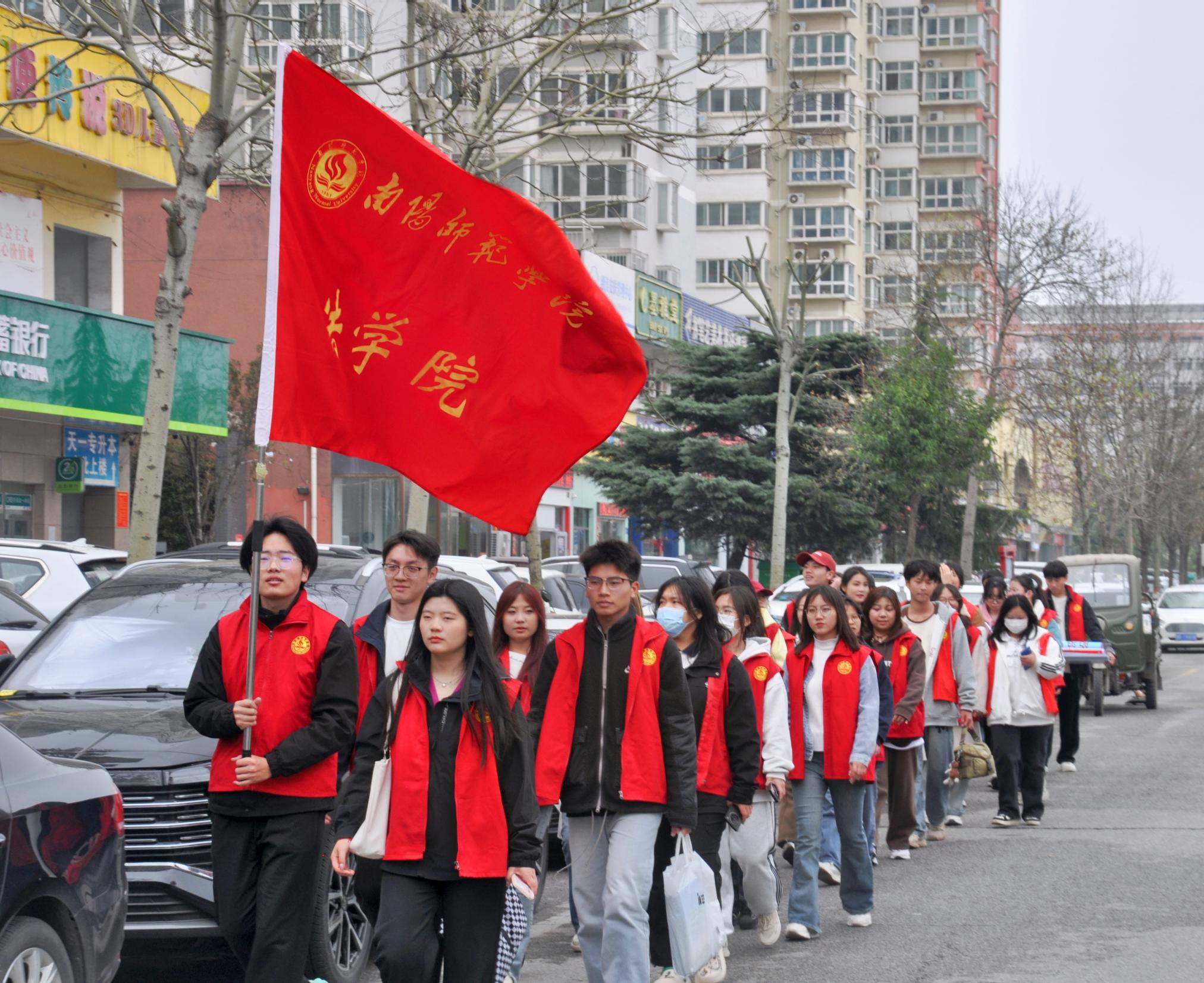 4月12日,法学院学子步行前往白河景区开展“南师学子·行走南阳”主题团日活动。志愿者们从中区大门出发,在卧龙岗景区了解到中国古代杰出政治家诸葛亮的故事,通行躬耕路走进白河湿地公园,从中感受南阳半城山水的无限魅力。