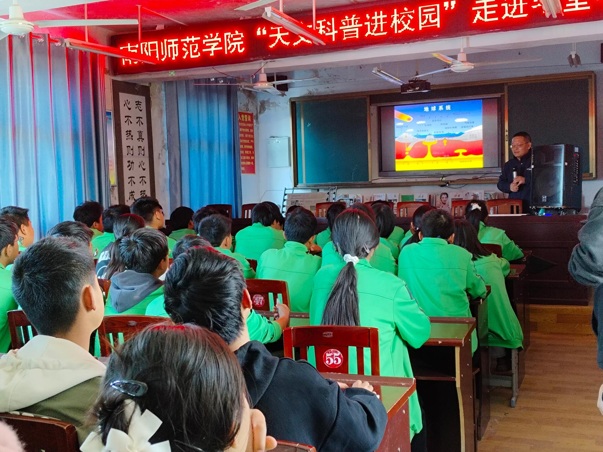4月12日,星缘天文社团在淅川县毛堂中学开展“天文科普进课堂之毛堂中学站”活动。社团指导老师向中学生讲解我们生存的宇宙环境,激发他们探索宇宙的激情,组织中学生使用专业设备观测太阳,并设置问答环节,积极提问、解答天文知识的疑问。