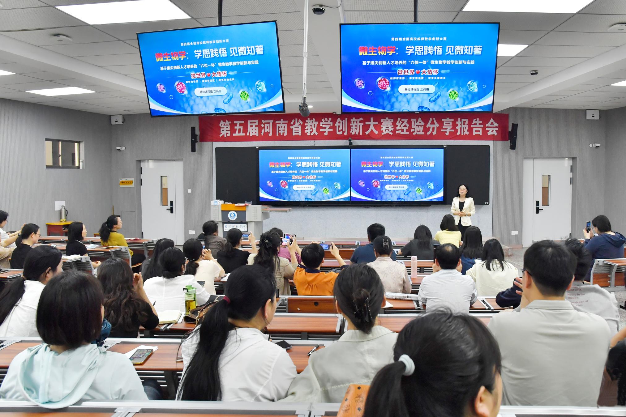 本网讯(苏凤云/文 冯一珺/图)为提升天游官网教师教学创新能力,发挥“以赛促教、以赛促改、以赛促学”的教学示范作用,5月16日下午,教务处在综合楼202智慧教室举办“第五届河南省教学创新大赛经验分享报告会”。邀请生命科学学院牛秋红老师、化学与制药工程学院杨妍老师、智能制造与电气工程学院郑扬冰老师分享赛课经验。教务处负责同志、各学院近百名教师参加。