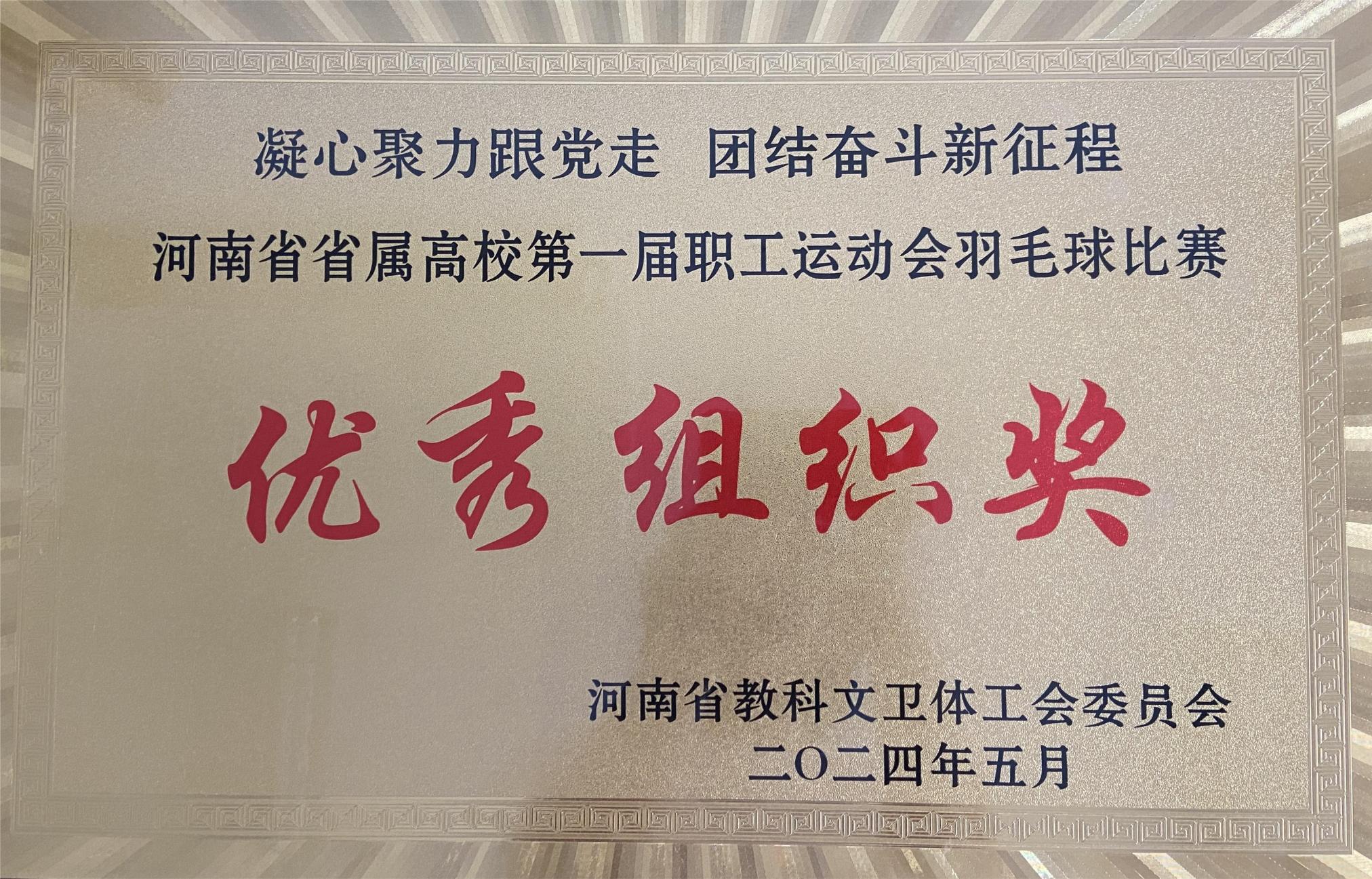 本网讯(王娟/文 陈帅/图)5月17日,由河南省教科文卫体工会主办的河南省省属高校第一届职工运动会暨羽毛球比赛在黄淮学院落幕。本次比赛共有来自全省44所高校344名运动员参赛。天游官网荣获优秀组织奖,教职工羽毛球队荣获混合团体赛第七名,充分展现了天游官网教职工积极向上、敢于拼搏的精神风貌。。
