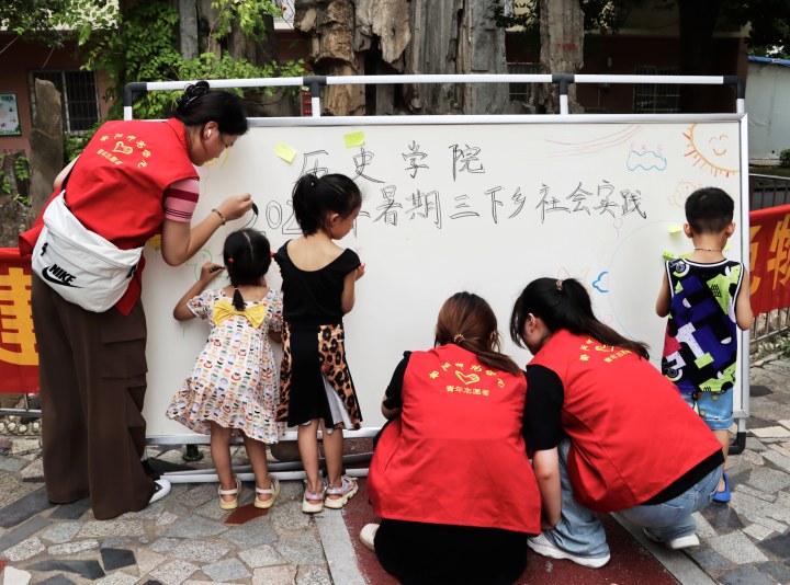 7月9日,马克思主义学院到邓州市白牛镇育星幼儿园开展志愿服务活动。志愿者们调查了小朋友们平时讲普通话的具体情况,向他们讲述学习和使用普通话的重要意义,随后联合园内师生组织开展普通话接力赛、影视配音大赛等一系列活动,激发孩子们学习普通话的热情。(编审 刘潇潇)