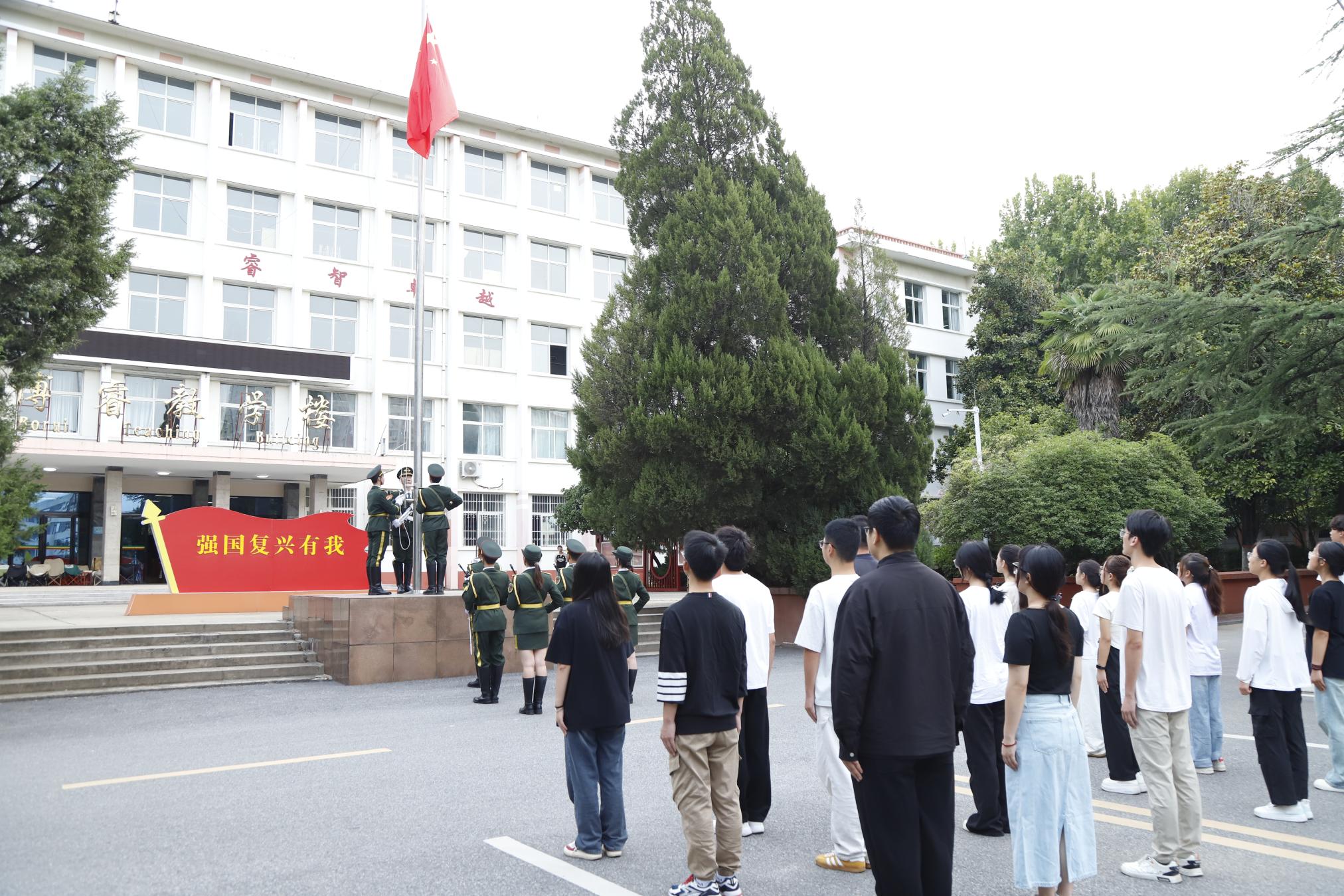 伴随着激昂澎湃的《义勇军进行曲》,国旗护卫队身着礼服,迈着整齐有力的步伐,缓步护送五星红旗走向升旗台。在场师生们全体肃立并行注目礼,目送红旗徐徐升起。仪式后,同学们纷纷表示对新学期、新起点充满憧憬与希望。