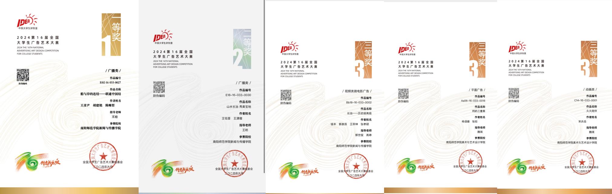 新闻与传播学院王彦尹、胡建铭、陈晰哲同学的作品《船与岸的连结》获得国家级一等奖;新闻与传播学王潇璇、王钰荃同学作品《山水长治 秀美宝地》获得国家级二等奖,钱丰、郭泉辰、王羿坤、张孝硕同学作品《长治—历史级高级》和美术与艺术设计学院宋兵岳同学的作品《久久陪伴》、杨语婕、张如同学作品《钙奶三重奏》获得国家级三等奖。此外,刘梦茹等多位同学创作的14项作品获得国家级优秀奖。此前在全国大学生广告艺术大赛河南省赛区的获奖公示名单中,天游官网共获得省级奖项210余项,获奖作品数量和质量在全省参赛院校中名列前茅。