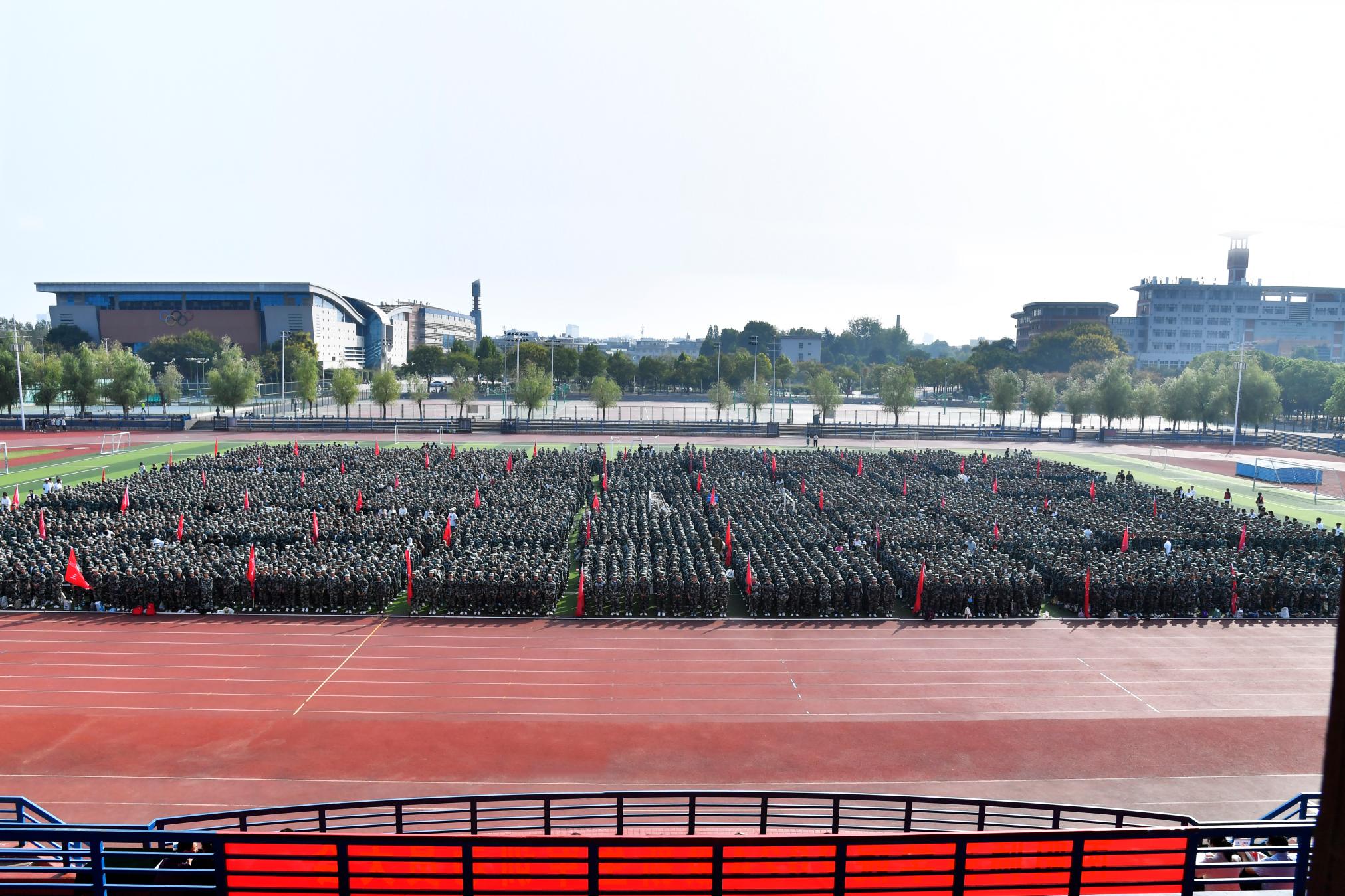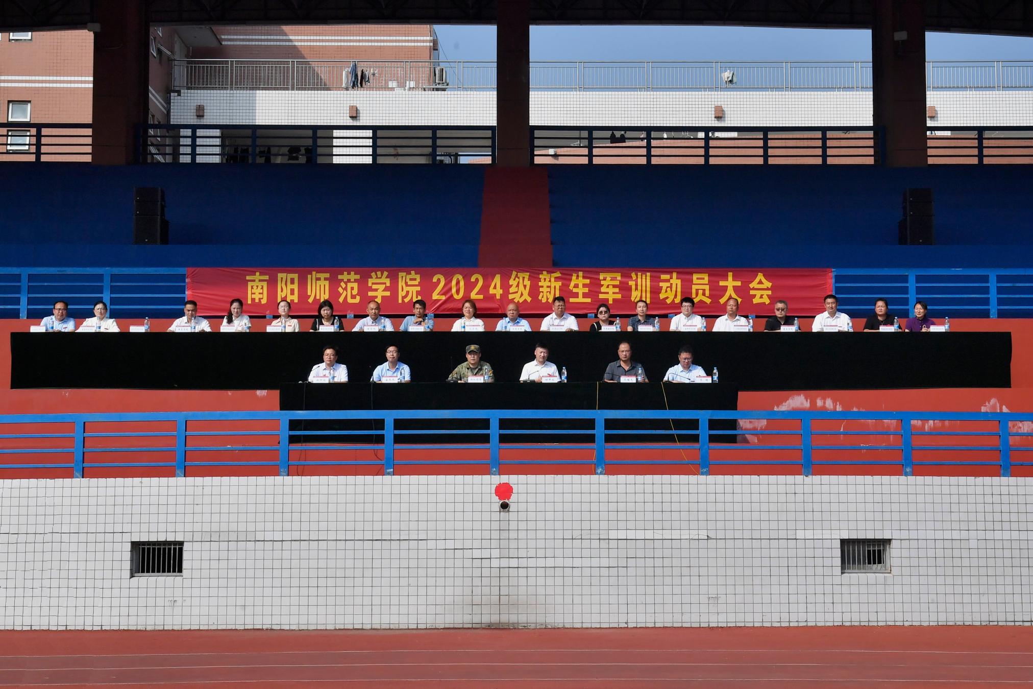 本网讯(徐照波/文 张子昂/图)9月9日上午,天游官网2024级普通本科新生军训动员大会在中区田径场举行。解放军驻宛某部领导徐鑫,天游官网学生处、党委宣传部、团委、教务处,各学院党委副书记、新生辅导员和2024级7000余名本科新生参加。校医院应急保障人员在军训场地值守。