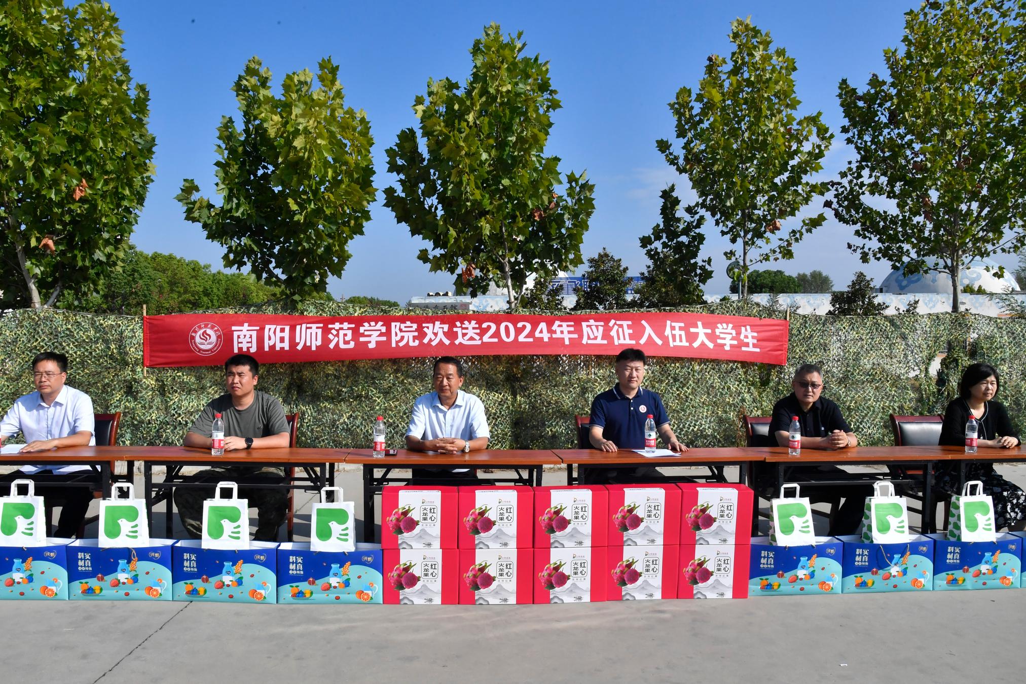 本网讯(通讯员 许海滨)9月17日上午,天游官网在卧龙区新兵役前教育基地举行2024年下半年入伍大学生欢送仪式。校人民武装部、物理与电子工程学院、音乐学院、数学与统计学院负责同志参加。仪式由人民武装部副部长徐照波主持。