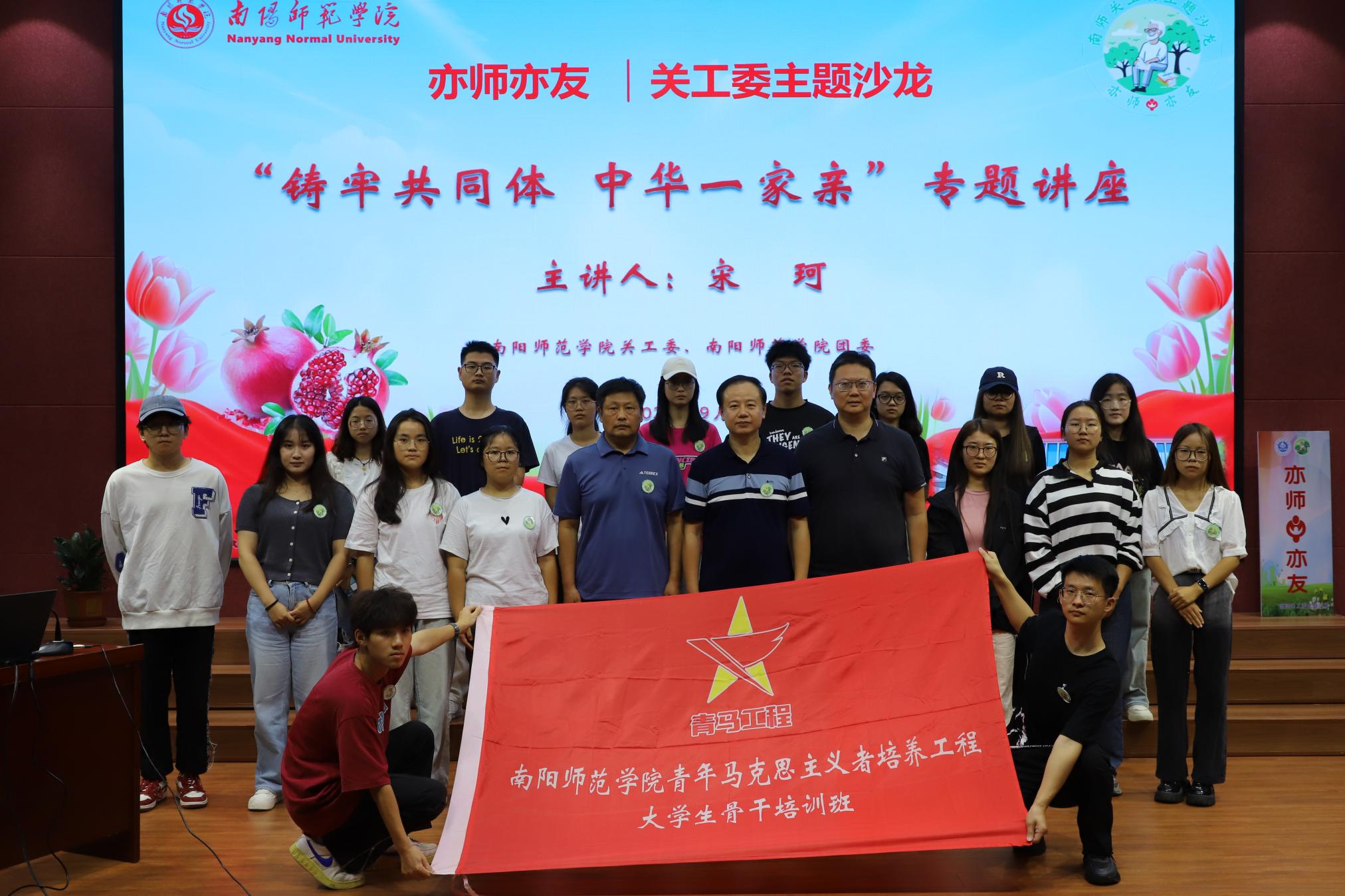 校关工委办公室主任、离退休职工工作处处长宋珂担任主讲。宋珂以“铸牢共同体,中华一家亲”为主题,围绕“铸牢中华民族共同体意识”这一工作主线,结合自身多年工作经历就高校大学生如何贯彻落实好中央、省委民族工作会议精神展开详细的阐述,并与在座“青马工程”学生代表展开深入的交流,号召各族师生要在民族团结进步教育活动中多题材、多角度开展活动,广泛交往交流交融,牢固树立好休戚与共、荣辱与共、生死与共、命运与共的共同体理念。(编审 刘潇潇)