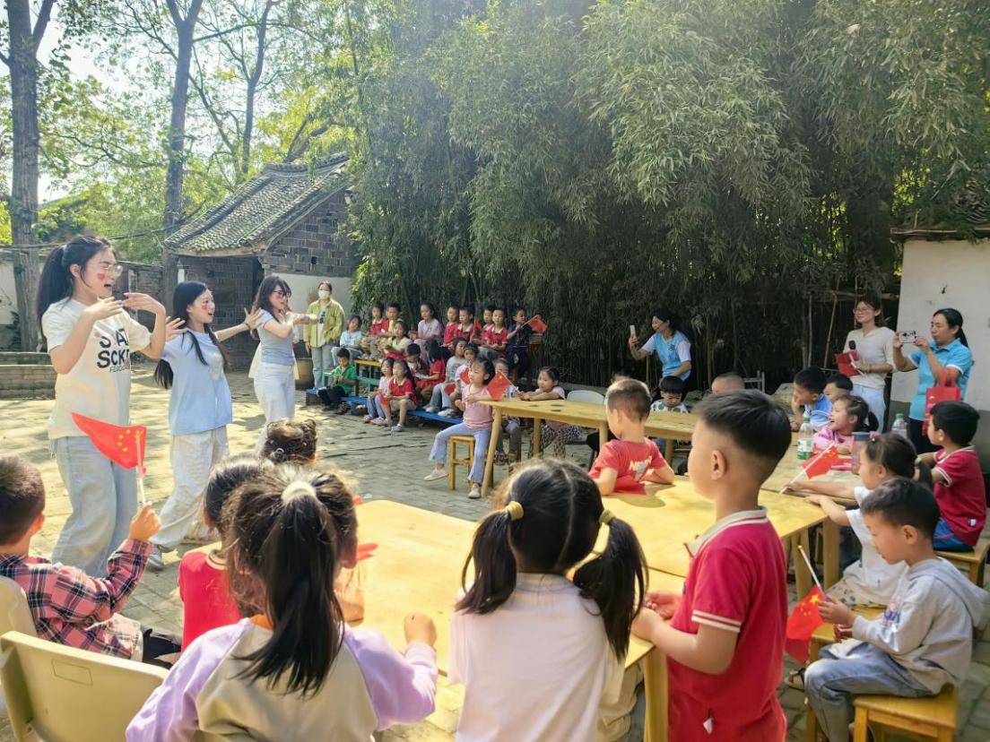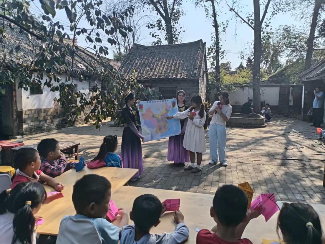 活动中,“小家与大家”活动引导小朋友制作小家卡片贴在中国地图上,领会家国内涵。同学们领唱《歌唱祖国》,孩子们加入,歌声响彻全场,播撒爱国种子。