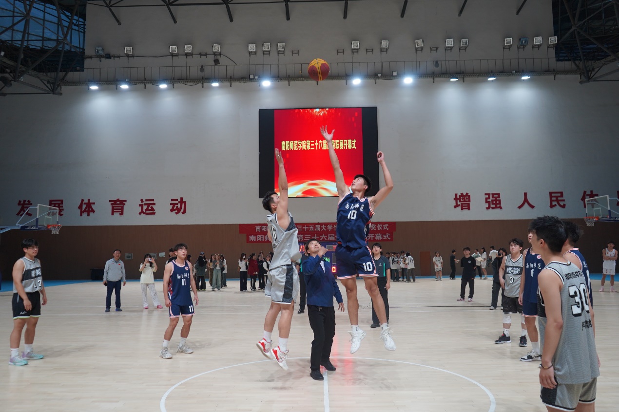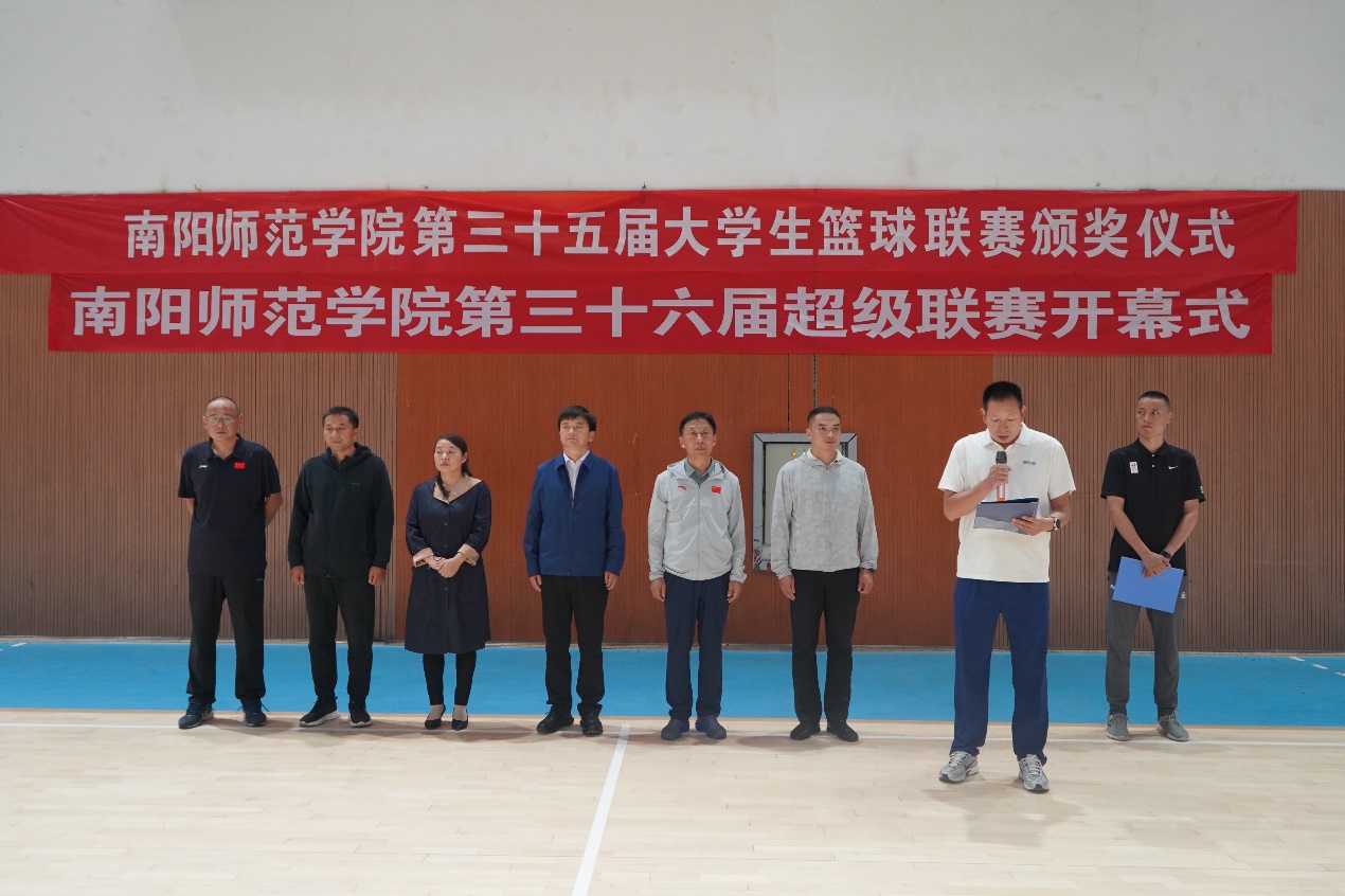第三十六届超级联赛开幕式环节,体育学院院长雷波致辞,教务处处长刘金江宣布比赛开始,并为首场比赛执行了跳球。