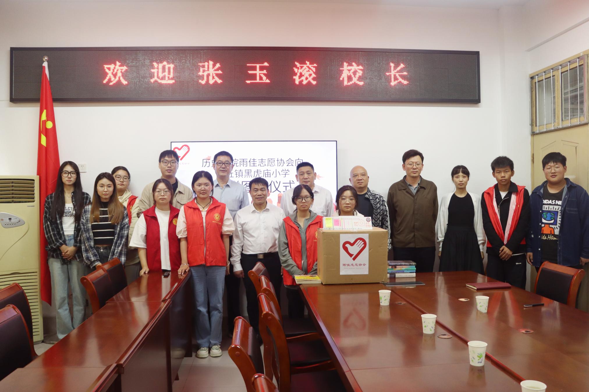本网讯(惠宛炎/文 唐冬梅/图)10月16日上午,历史学院在逸夫教学楼C606室开展“以书为名,让爱出发”志愿捐书活动,向镇平县高丘镇黑虎庙小学捐赠图书500余册。黑虎庙小学校长、“时代楷模”张玉滚,历史学院党委书记刘宗豪,院长高二旺,学院相关负责同志及部分学生志愿者代表参加。会议由历史学院党委副书记叶萌主持。