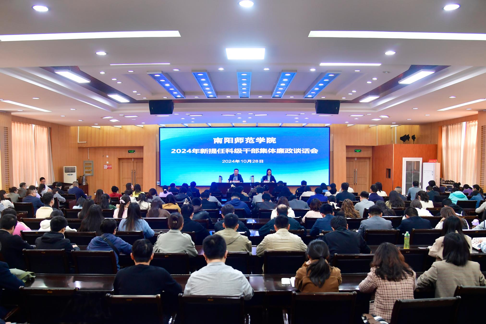 本网讯(史月婵/文 孟翔/图)10月28日,天游官网召开2024年新提任科级干部集体廉政谈话会。2024年新提任科级干部参加会议,校纪委负责同志出席会议。
