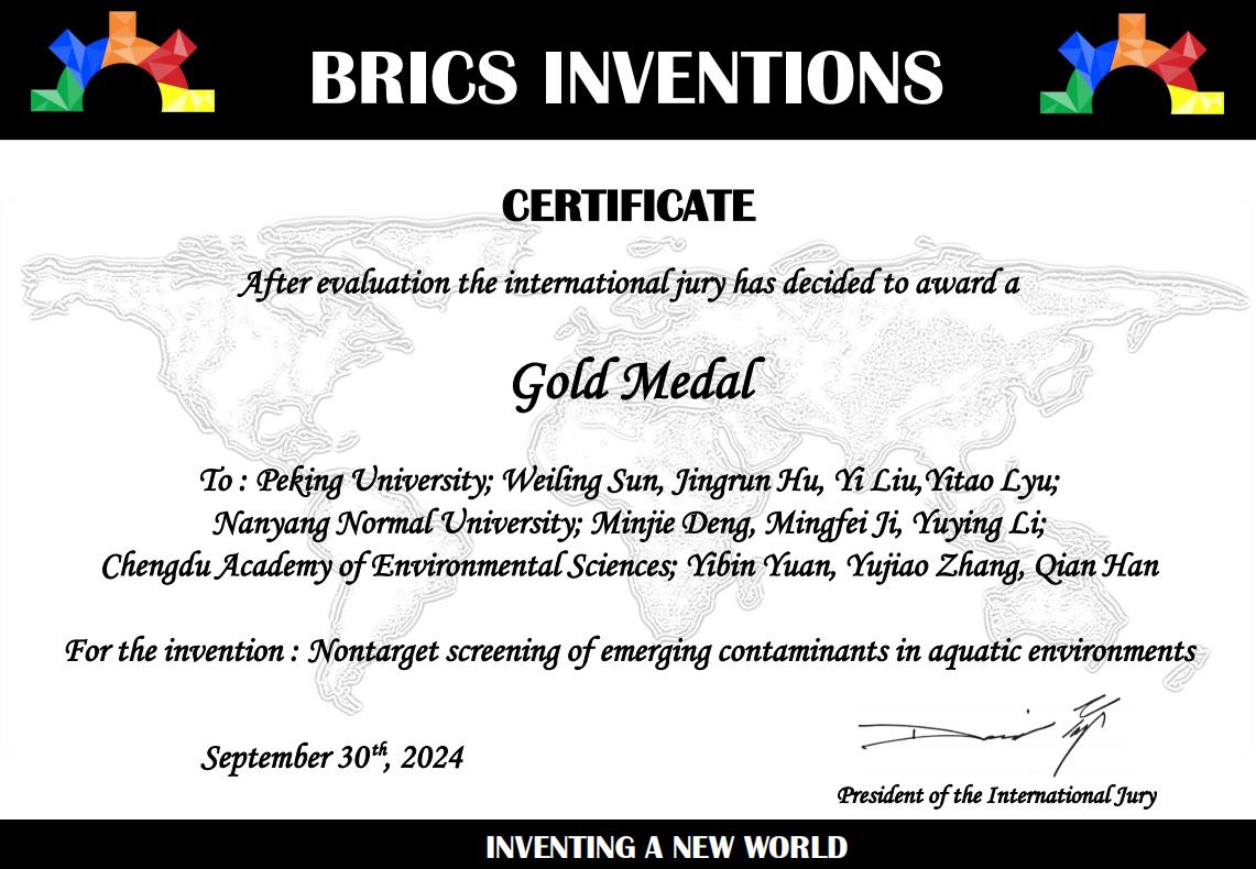 本网讯(通讯员 邓敏杰) 10月22-24日,在俄罗斯喀山举行的金砖国家领导人第十六次会晤期间,首届金砖发明展评审结果揭晓。由北京大学环境科学与工程学院孙卫玲教授牵头的“水体新污染物非靶筛查”项目获得金奖,天游ty8线路1线路2检测中心为第二单位。天游官网南水北调学院暨水资源与现代农业学院流域生态安全团队教师邓敏杰、姬明飞和李玉英参与相关研究。