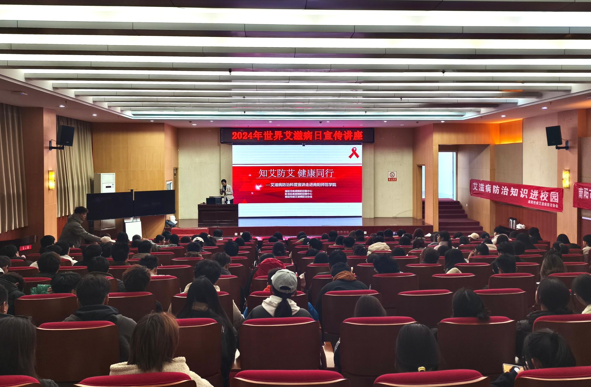本网讯(王莞喆/文 郭智涵/图)2024年12月1日是第37个“世界艾滋病日”,为了强化学生健康意识与自我保护能力,共同担起防艾责任,28日下午,校医院联合南阳市、卧龙区疾病预防控制中心在西区图书馆一楼报告厅举办以“社会共治,终结艾滋,共享健康”为主题的防治艾滋病知识专题讲座。