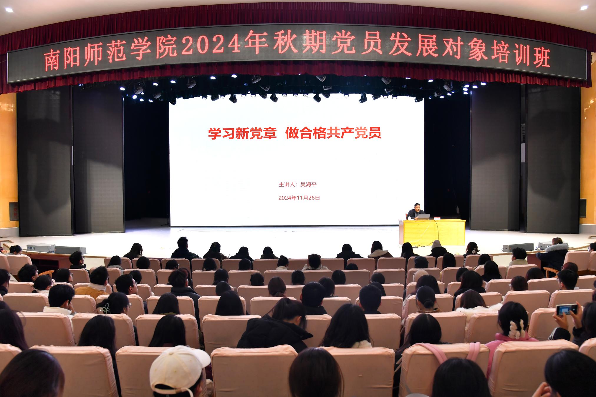 此次党员发展对象培训采取集中培训和在线学习两种方式。集中培训期间,学校邀请数学与统计学院党委书记冷元峰,外国语学院党委书记吴海平,学校新闻中心主任、党委宣传部副部长孟冬冬,党委巡察办公室副主任梁健,党委统战部副部长张子月分别就学习党的二十届三中全会精神、学习新党章、国家安全与形势政策教育、党纪与廉洁教育、统一战线理论教育等内容进行了专题辅导。分组学习期间,各学院悉心部署、合理安排,组织本学院党员发展对象就组织发展程序、党员的权利和义务进行认真学习讨论,并且撰写心得体会、观看教育影片。(编审 刘潇潇)