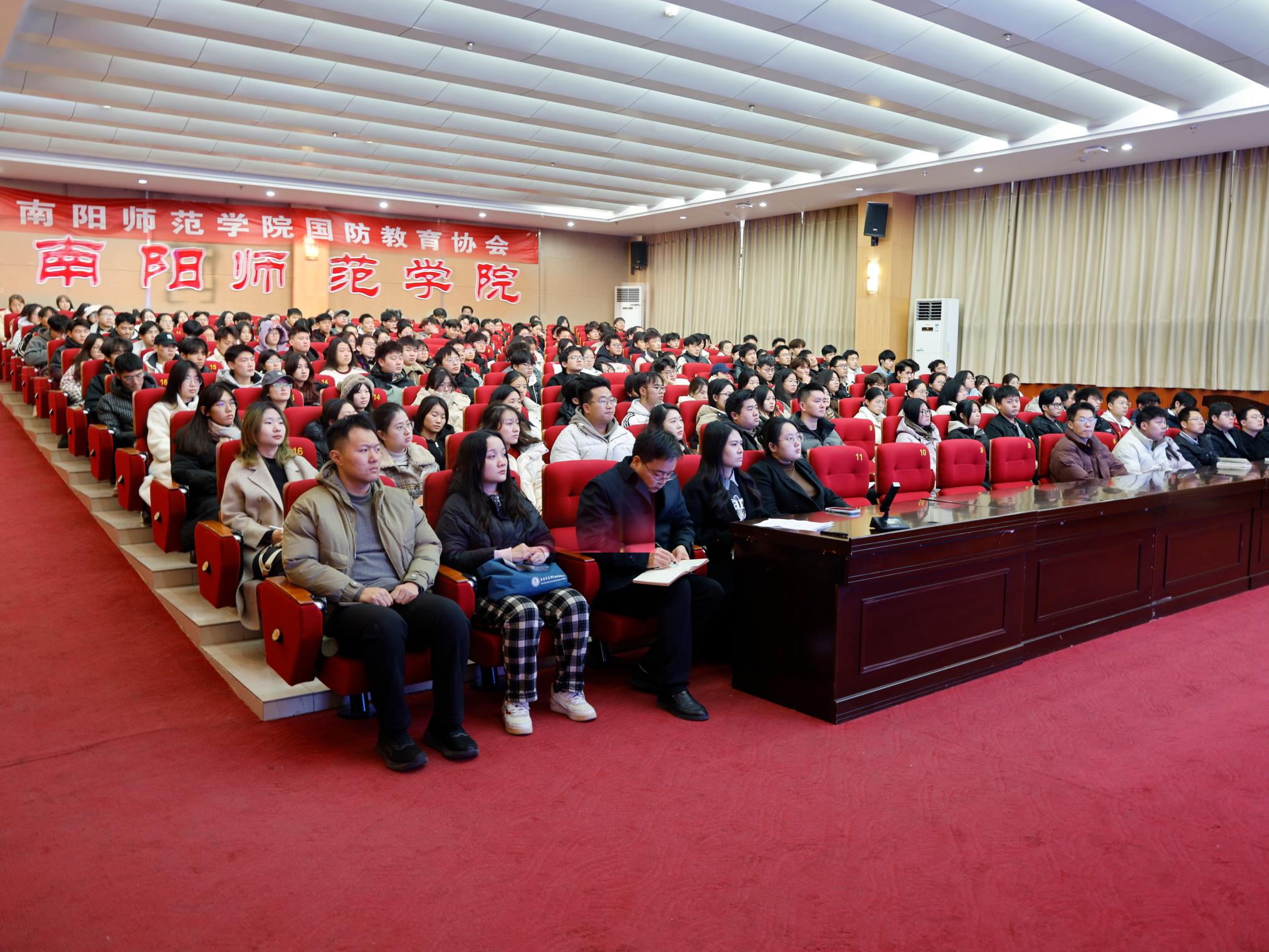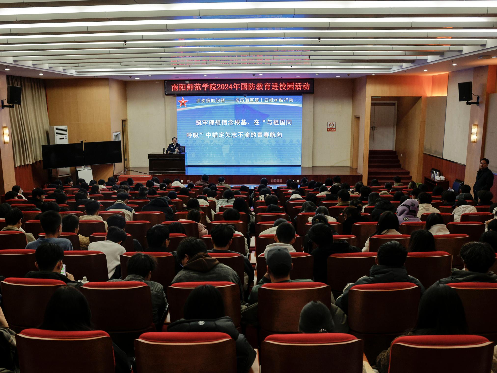 本网讯(许海滨/文 黄珍珍/图)为推动天游官网国防教育工作走深走实,弘扬爱国主义精神,传承红色基因,12月11日下午,天游官网在图书馆一楼报告厅举行国防教育进校园暨2025年征兵动员宣讲活动。南阳军分区李丁同志来校作报告,校人民武装部、全体征兵专干、国防教育协会骨干及预征青年代表参加。活动由校人民武装部副部长徐照波主持。