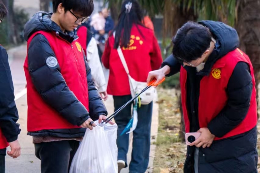 12月8日,人工智能与软件工程学院在南阳人民公园开展“爱心清扫,情暖冬日”志愿服务活动。活动现场,志愿者手持扫把、垃圾袋等清洁工具,对公园内的落叶、纸屑、烟头等垃圾进行清理,认真打扫每一个角落,公园环境焕然一新。