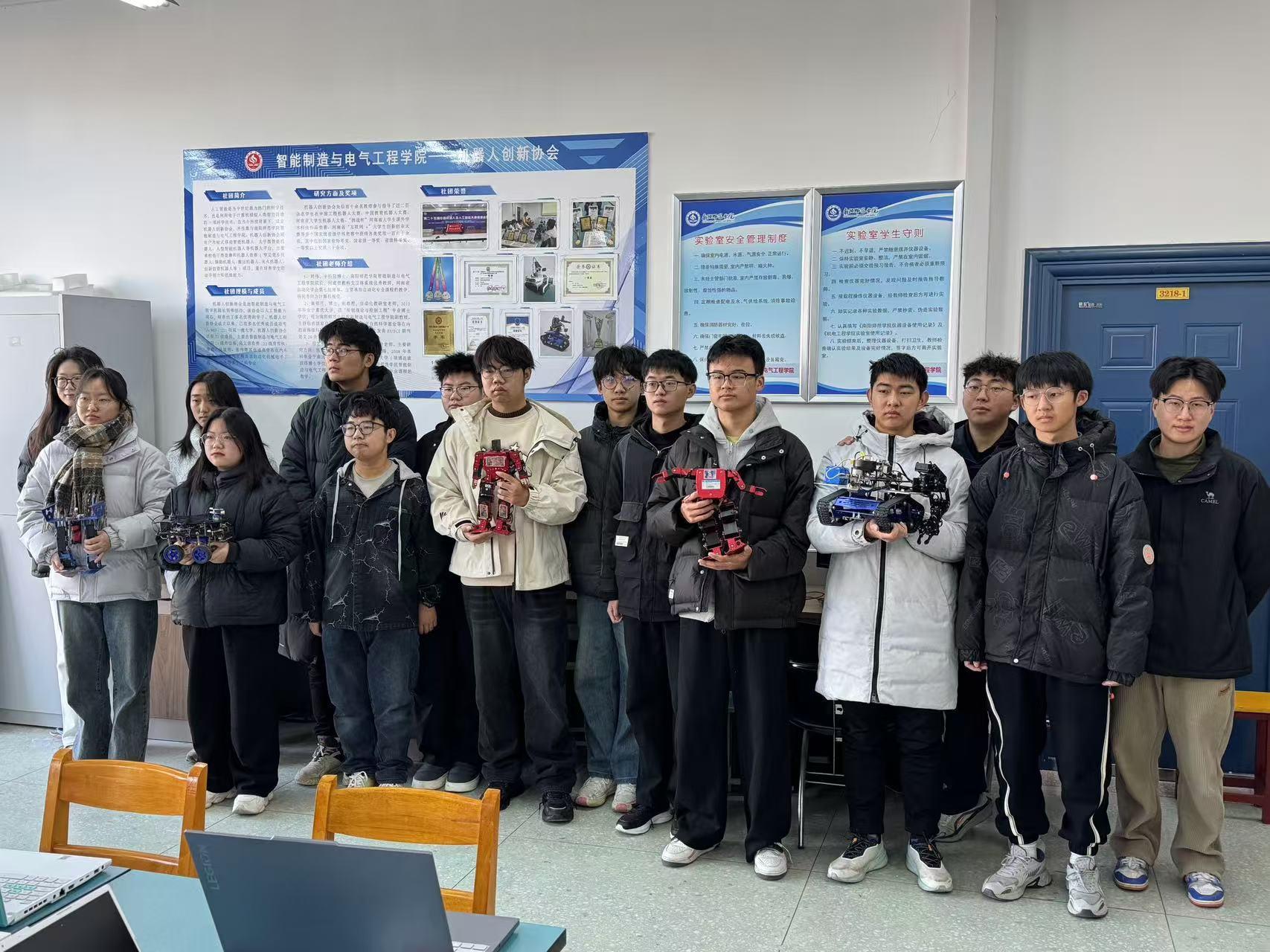 12月21日下午机器人创新协会在实训楼3218开展了“智驱未来,创想无限”机器人与智能车课外实践拓展活动。社员们围绕舞蹈机器人编写,智能小车研习以及智能履带机器人探索等方面有序开展了丰富多样的活动。