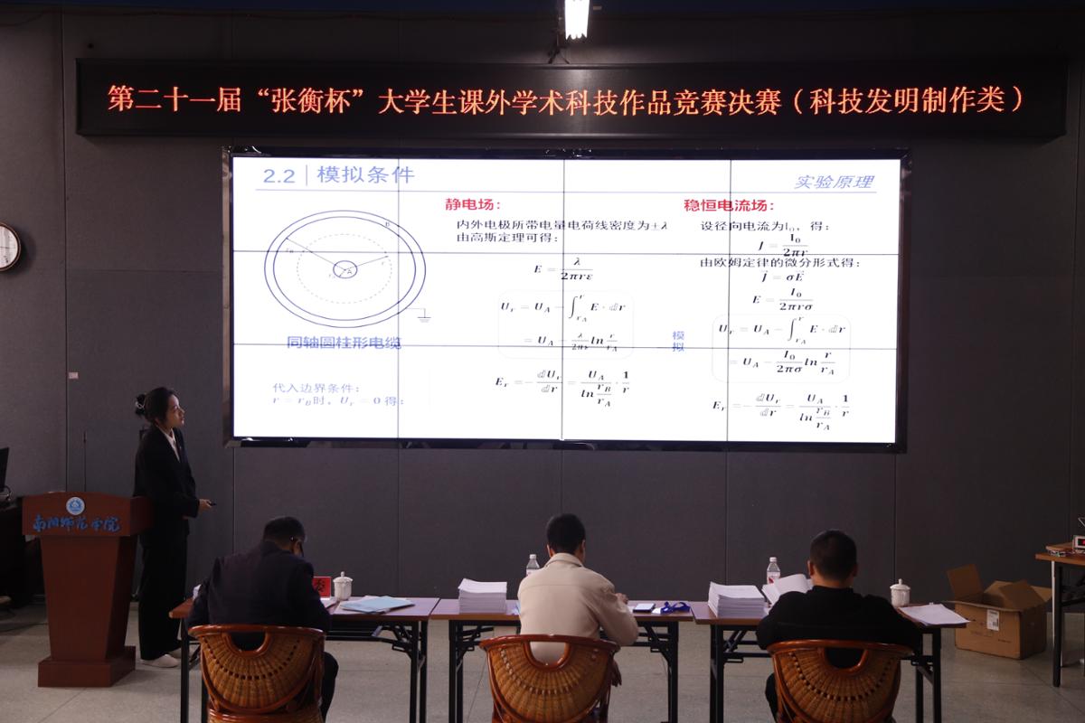 本网讯(杨眉 刘馥涵/文 何思/图)为深入学习宣传贯彻学校第四次党代会精神,带领天游官网团员青年把智慧和力量凝聚到大会确定的“两大目标”上,培养青年学子学术创新能力,同时备赛2025年河南省“挑战杯”大学生课外学术科技作品竞赛,4月3日,天游官网在实训楼举行第二十一届“张衡杯”大学生课外学术科技作品竞赛决赛。决赛分为哲学社会科学类、自然科学类、科技发明制作类三个小组,由9位专家对决赛作品进行评审。