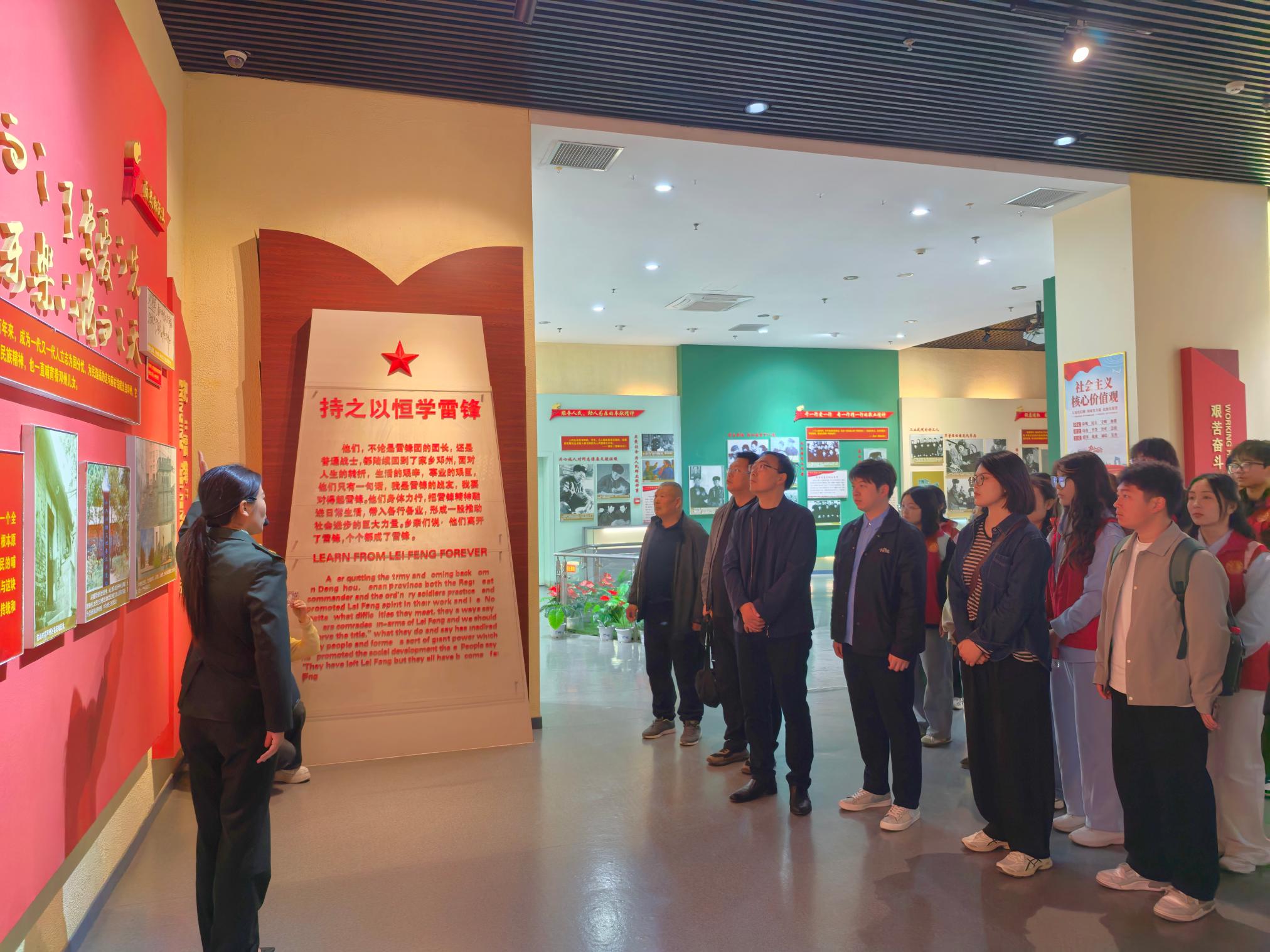 在邓州编外雷锋团展览馆,同学们通过一件件实物展品、一段段感人故事追忆雷锋同志短暂却辉煌的人生足迹,在“编外雷锋团”成员们数十年如一日的坚守中领悟雷锋精神跨越时空的时代价值。在雷锋画像前,该院党委书记沈洪豪带领大家重温入党誓词并进行现场授课。他表示,雷锋精神既是对中华民族传统美德的传承弘扬,又是社会主义核心价值观的实践表达,号召大家把崇高的理想信念与价值追求融入学习生活中,用青春书写新时代的雷锋故事。