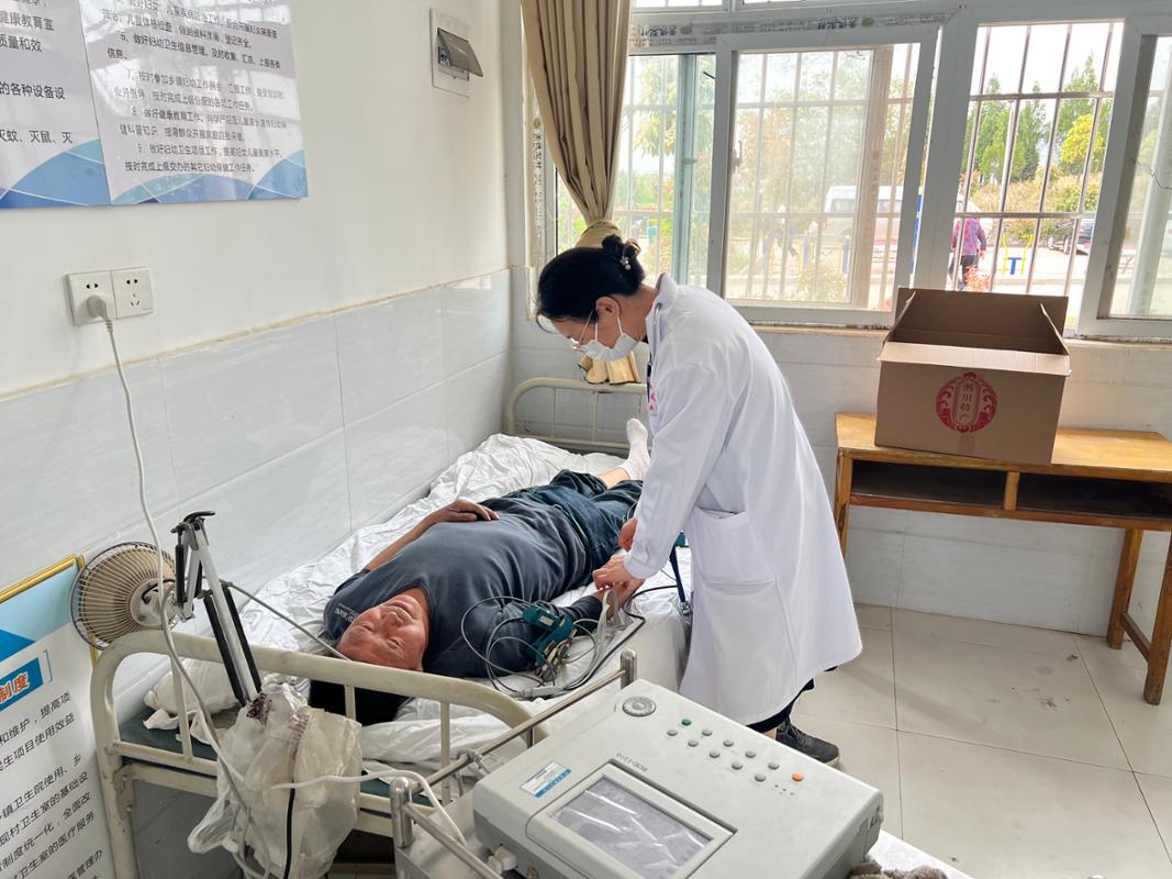 义诊现场,医务人员耐心接待每一位村民,认真为他们测量血压、血糖、心肺听诊及心电图等基础检查,针对村民们常见的慢性病、老年病,医生们凭借丰富的临床经验,细致诊断,提供专业治疗建议和用药指导。义诊过程中,医务人员向村民们普及健康知识,讲解常见疾病的预防和治疗方法,倡导健康的生活方式。