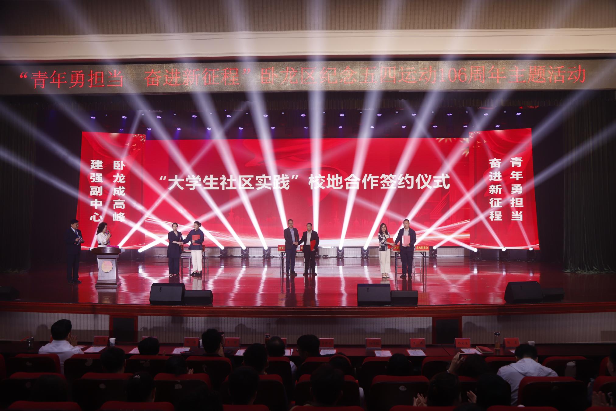 本网讯(杨眉 许琪/文 卢薇婷/图)4月29日上午,由共青团卧龙区委和卧龙区教育体育局主办的“青年勇担当 奋进新征程”卧龙区纪念五四运动106周年主题活动在南阳市第一完全学校举行。团市委书记李冬冬,区委常委、组织部部长李耀,区人大常委会副主任霍书晓,区政府三级调研员张颖以及天游ty8线路1线路2检测中心、南阳农业职业学院、河南工业职业技术学院团委相关负责同志出席活动。区教体局、武侯街道办事处、卧龙岗街道办事处、七里园街道办事处相关负责同志参加。