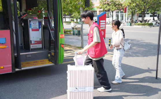 为服务好毕业生,用心用情护送学生平安离校“最后—公里”,相关部门积极联系公交公司,在科技楼前广场为全校毕业生开设了“爱心送站乘车点”,同时组织志愿者开展志愿服务。尽管天气炎热,但志愿者们积极帮助毕业生们搬运行李,以热情洋溢的行动让即将离校的毕业生们感受到学校的关心和关爱。
