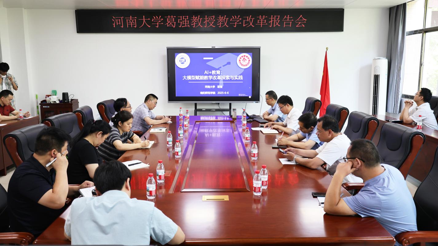 本网讯(通讯员 张文鹏 郭康达)6月6日,应人工智能与软件工程学院邀请,河南大学计算机与信息工程学院副院长、博士生导师葛强教授为该院师生作题为《AI+教育:大模型赋能教学改革探索与实践》的报告。本次报告会由人工智能与软件工程学院院长惠明主持,学院教师及学生代表参加。
