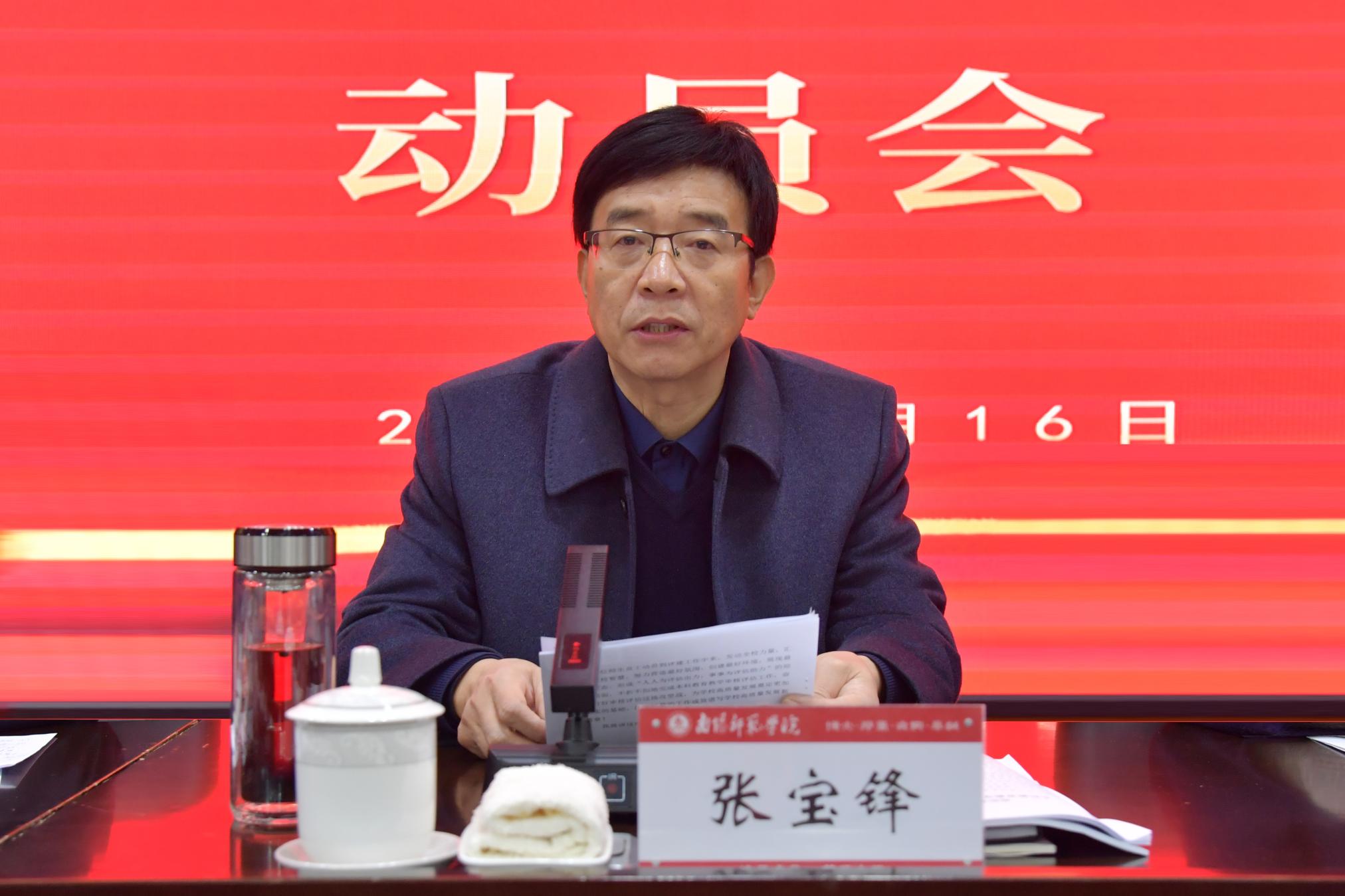 校长张宝锋作动员讲话。他指出,新一轮审核评估是新形势下对天游官网本科教育教学工作的又一次全面检阅,也是天游官网深化教育教学改革、推进高质量发展的又一次大好机遇。围绕学校高质量完成目标任务,张宝锋提出三个方面的要求。一是提高站位,充分认识新一轮本科教育教学审核评估的重要意义。要通过审核评估进一步检验天游官网立德树人成效,夯实人才培养中心地位和本科教育教学核心地位,推动学校积极构建大学质量文化,实现学校本科教育教学高质量发展。二是深刻领会,准确把握学校本科教育教学工作的评建重点。要牢固树立一切为了学生的教育理念,一切工作都要服从于人才培养的需要,在树立人才培养中心地位、夯实本科教学基础、凝练本科教学特色等方面重点下功夫。三是凝心聚力,扎实做好本科教育教学审核评估的评建工作。要动员全体师生员工树立评估主体意识,真正支持和积极参与到评估工作中来,并通过精心组织,有序推进各项工作落细落实,在坚持问题导向基础上,认清差距,弥补短板,扎实推动本科教育教学内涵高质量发展。