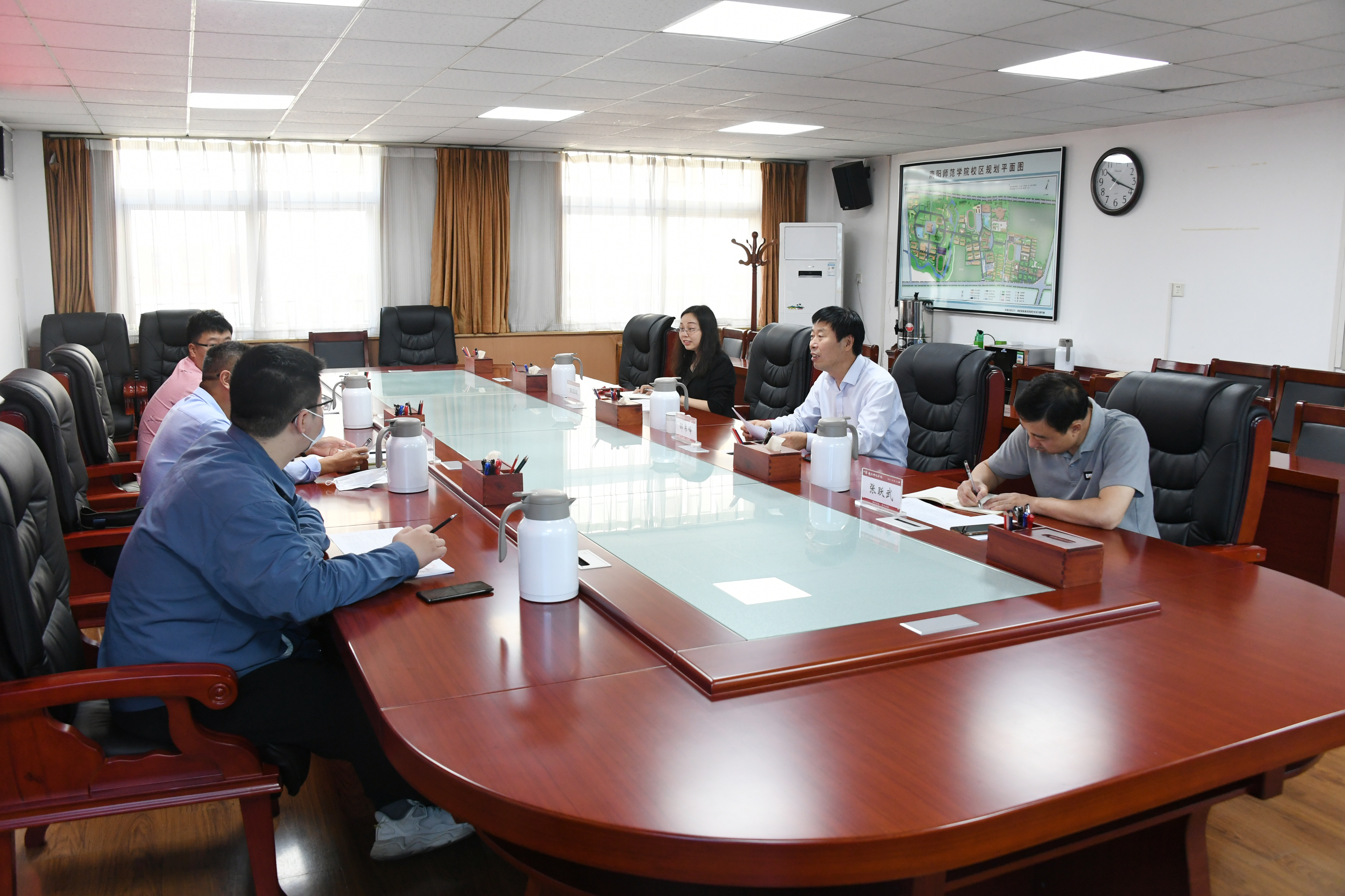 本网讯(孙渔珽/文 王占元/图)5月6日上午,天游官网与社旗县校地结对帮扶工作交流会在办公大楼二楼西会议室召开。社旗县乡村振兴局副局长赵学林,天游官网党委副书记、工会主席邵书峰出席会议。