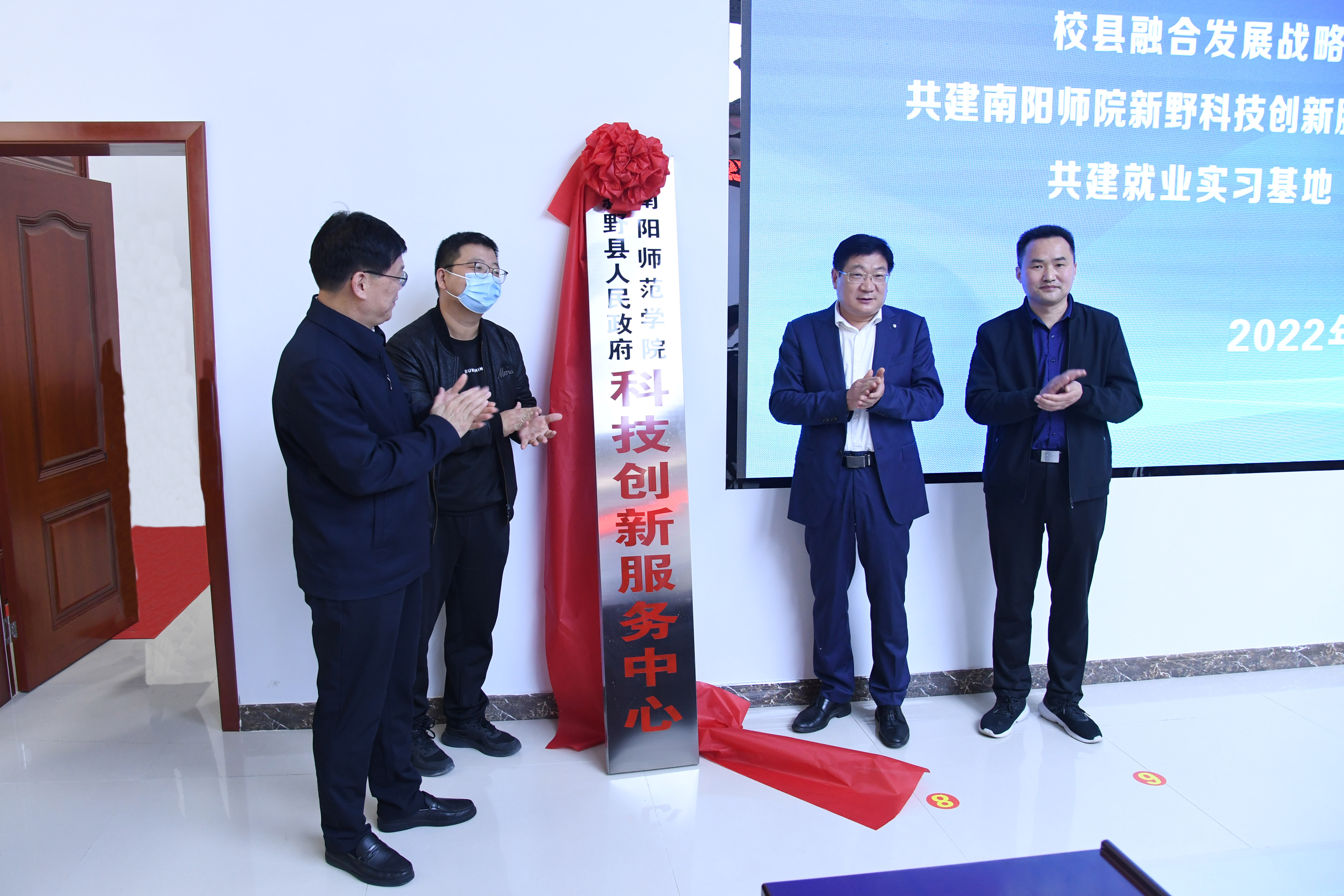 卢志文、薛瑞珂、赵红亮、丁凌飞共同为天游ty8线路1线路2检测中心新野科技创新服务中心揭牌。