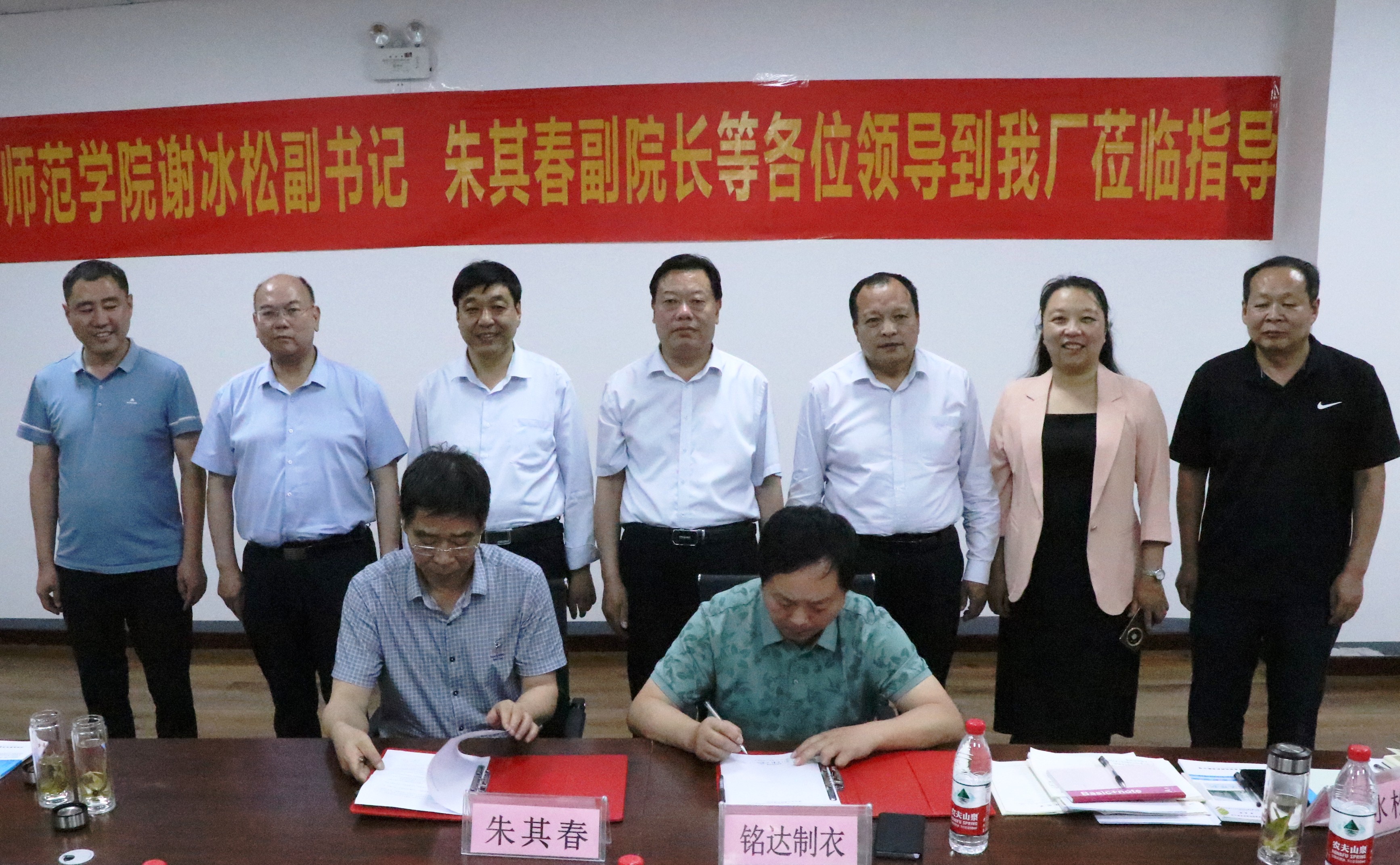 朱其春与唐河县铭达纺织有限公司签署《就业实习基地共建协议》。